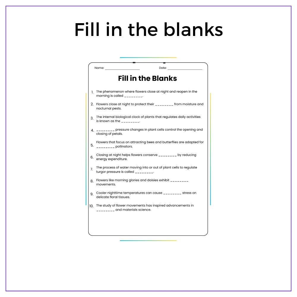 Learn why flowers close at night with our worksheet for grades 4-8! Explore plant behavior in this fun lesson!