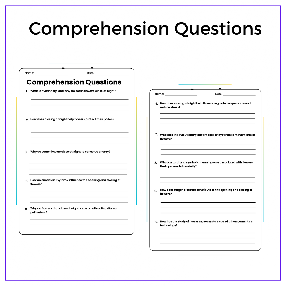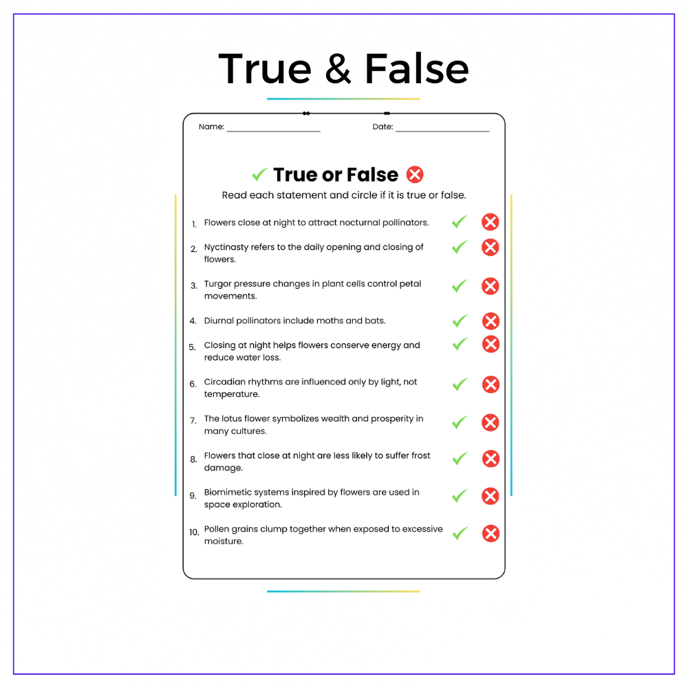 This worksheet helps your students discover the fascinating reasons why some flowers close at night and open in the morning with this interactive Why Do Some Flowers Close at Night? worksheet! Designed for grades 4–8, this resource explores plant behaviors known as nyctinasty and how environmental cues control flower movements, making complex botanical processes easy to understand through engaging activities.