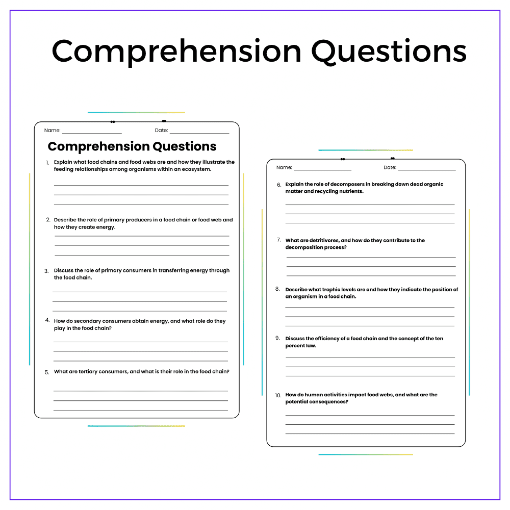 • Comprehension passages – Clear explanations of food chains and food webs