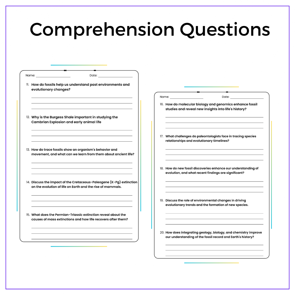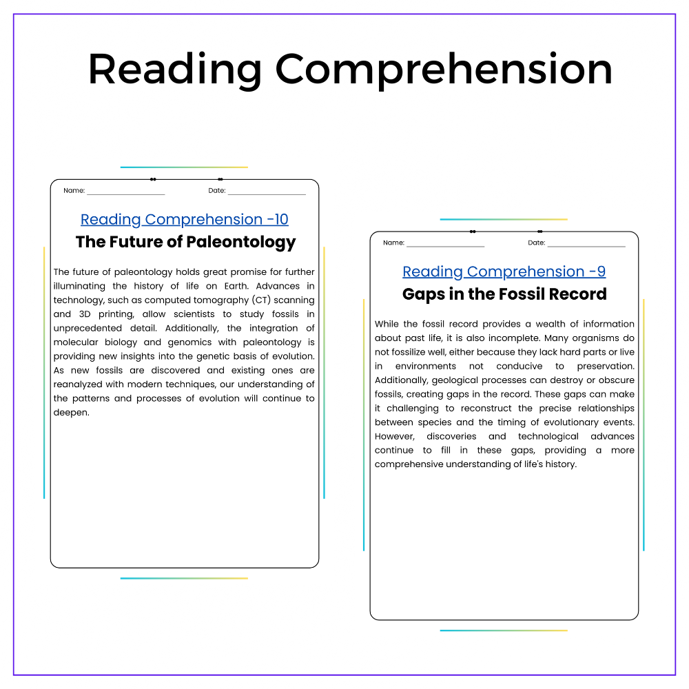 • Comprehension passages – Show how fossils form and what they reveal