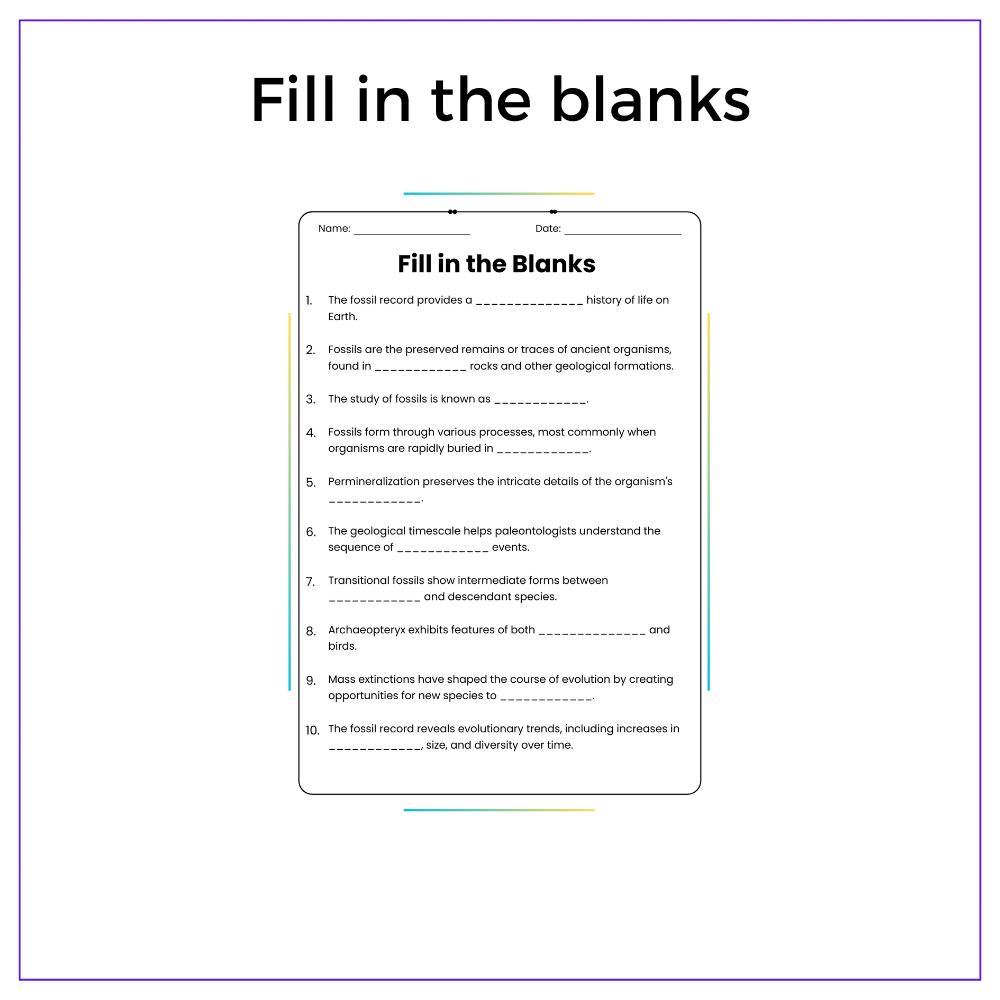 • Fill-in-the-blanks – Reinforce vocabulary like “strata” and “transitional fossils”