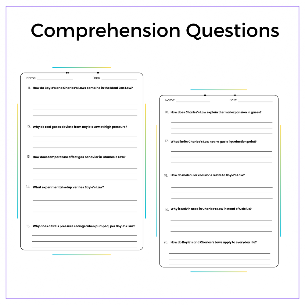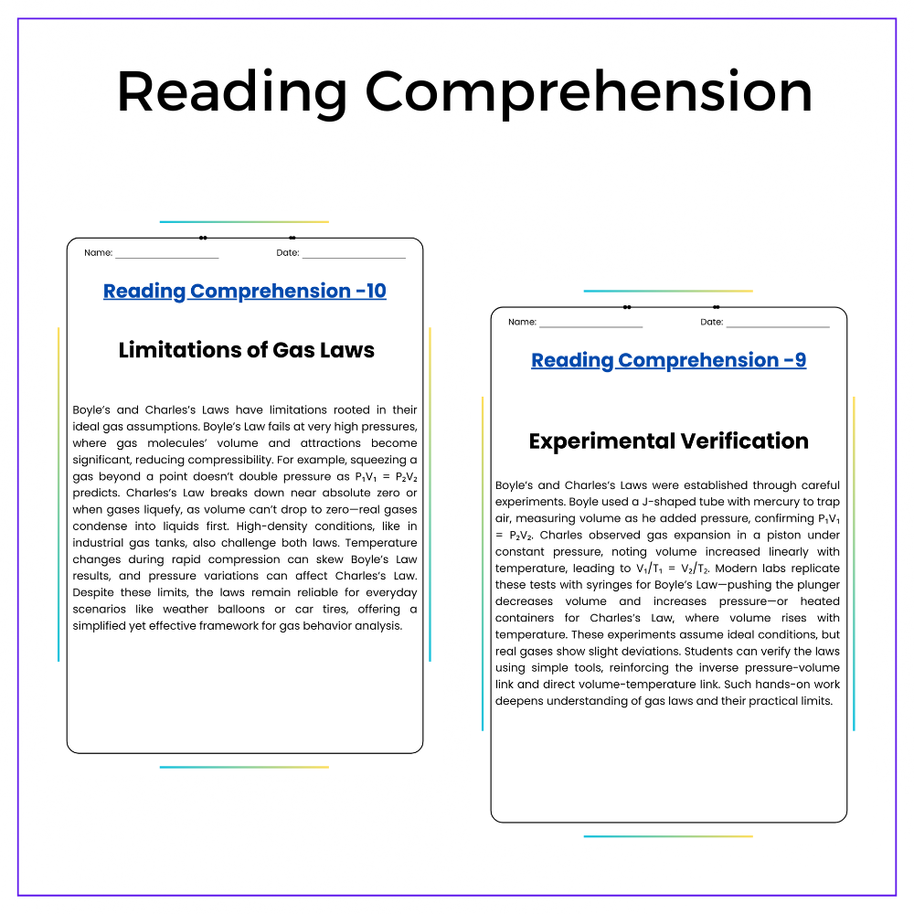 • Comprehension passages – Introduce Boyle’s and Charles’s laws with clear visuals