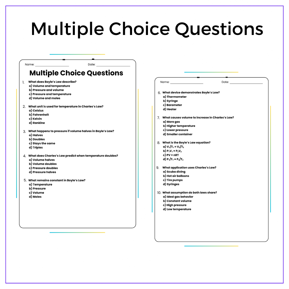 • Multiple-choice questions (MCQs) – Assess understanding of gas behavior