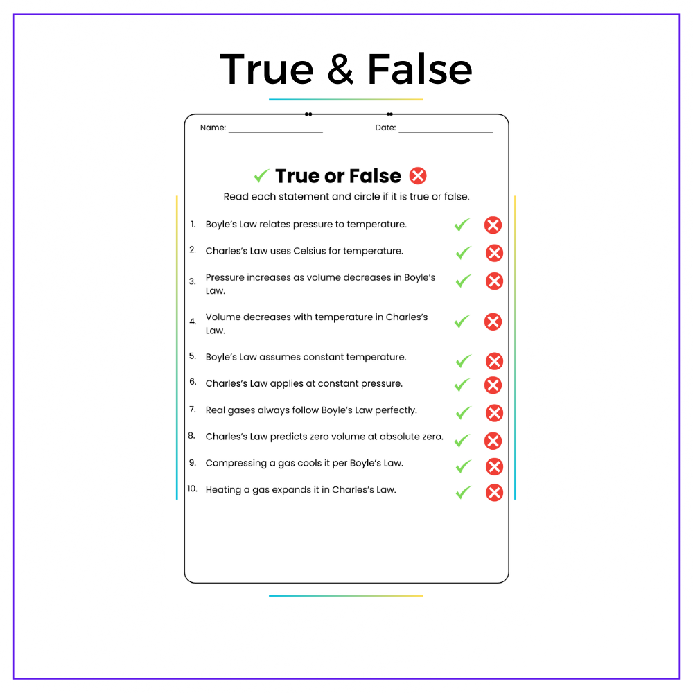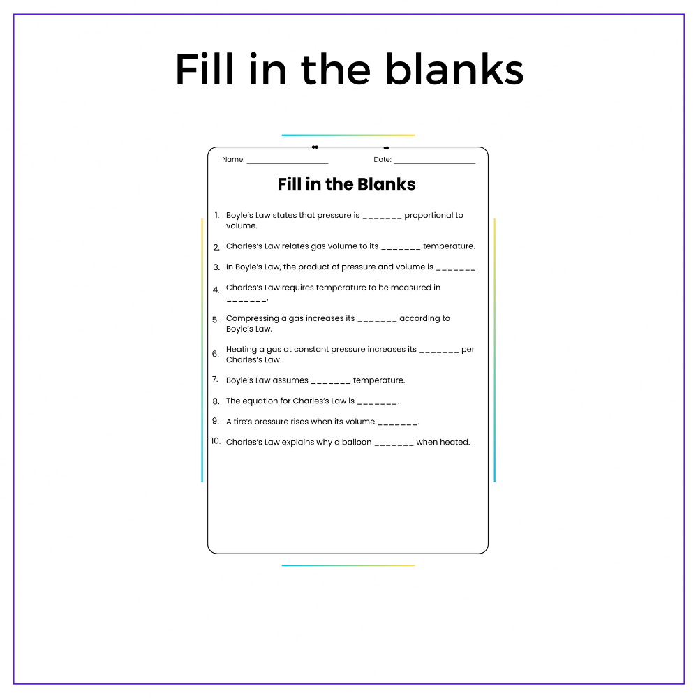 • Fill-in-the-blanks – Cover key concepts like “pressure,” “volume,” and “temperature”
