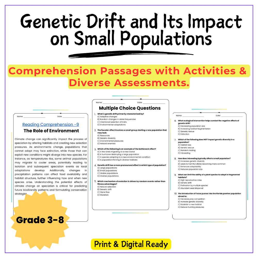 - Comprehension passages – Explain genetic drift with real-world examples