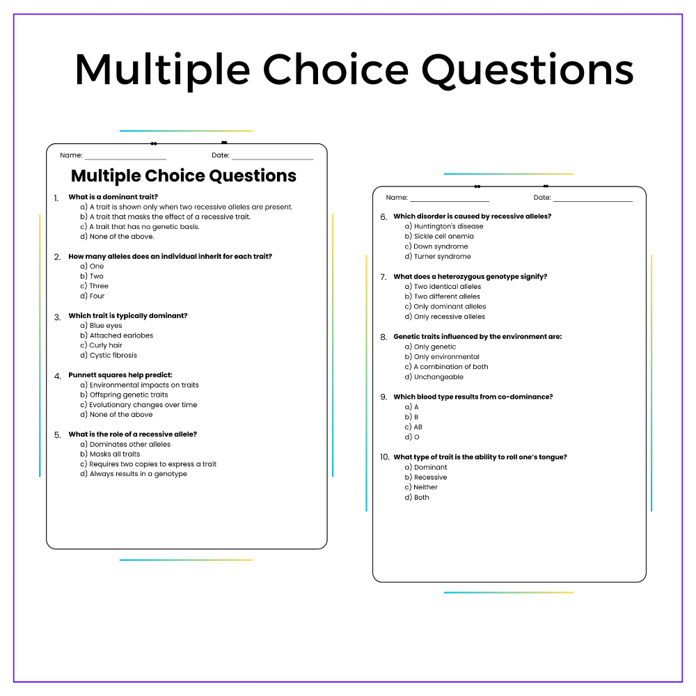 - Multiple-choice questions (MCQs) – Test foundational genetics