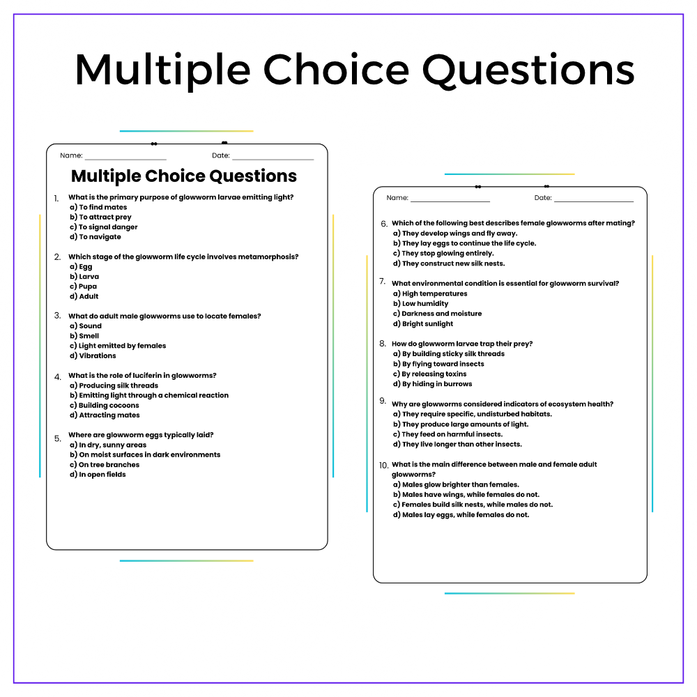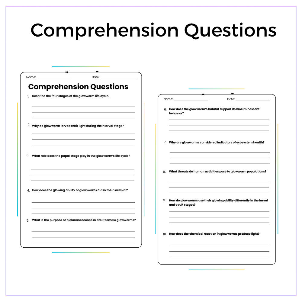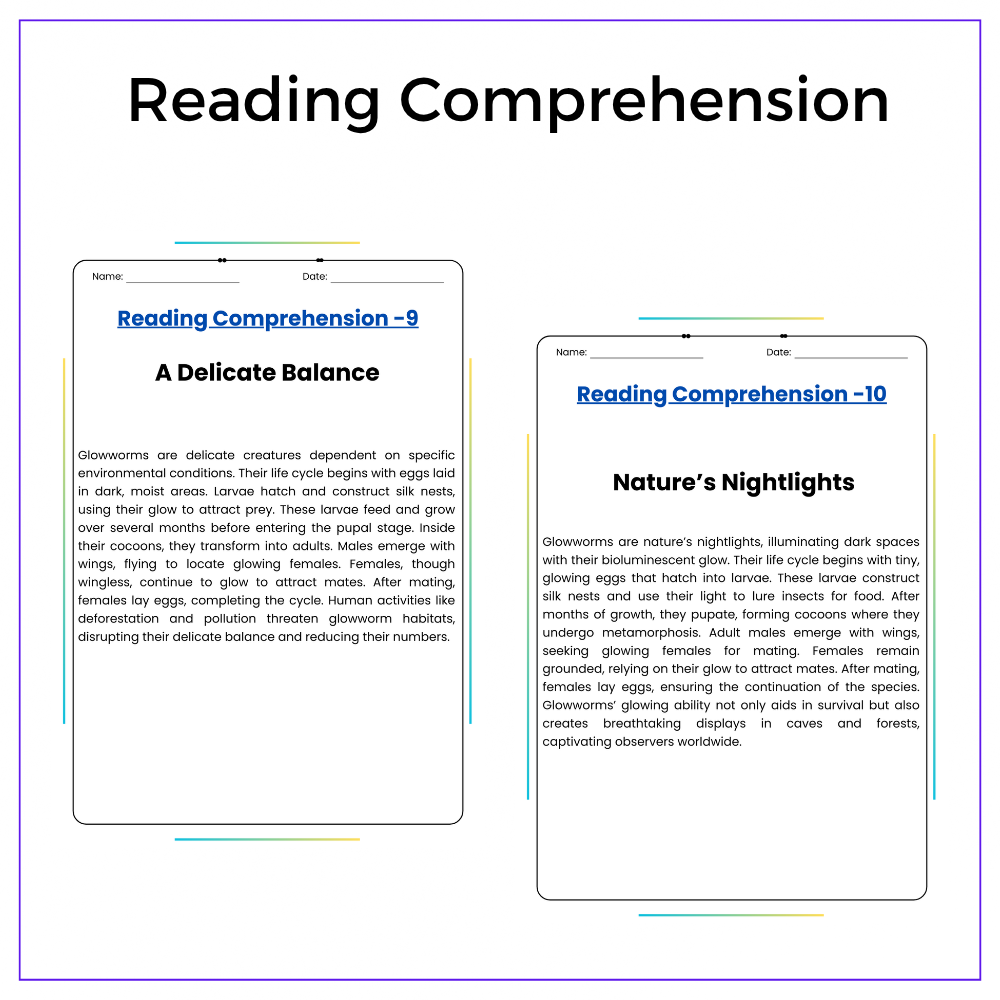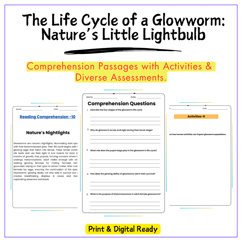• Comprehension passages – Explore the stages and glow function of glowworms