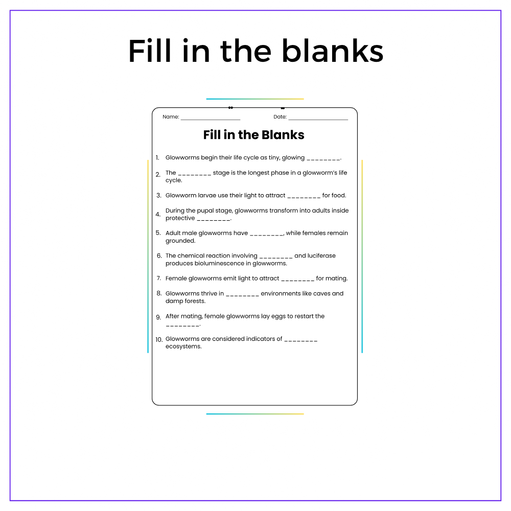 This worksheet shines a light on bioluminescence with the interactive Life Cycle of a Glowworm worksheet! Designed for grades 4–8, this engaging resource explains how glowworms hatch, grow, and emit light as part of their survival strategy, making life science exciting and accessible.
