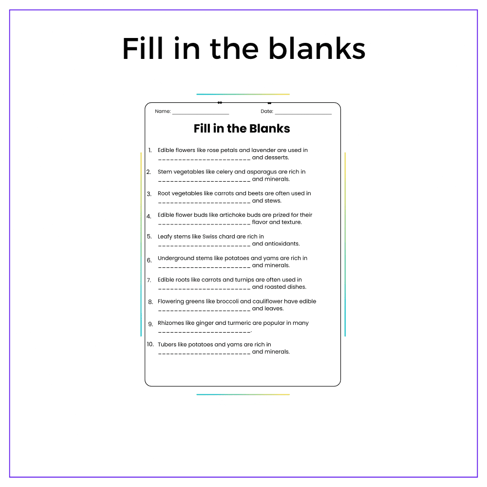 - Fill-in-the-blanks – Reinforce important terms and concepts