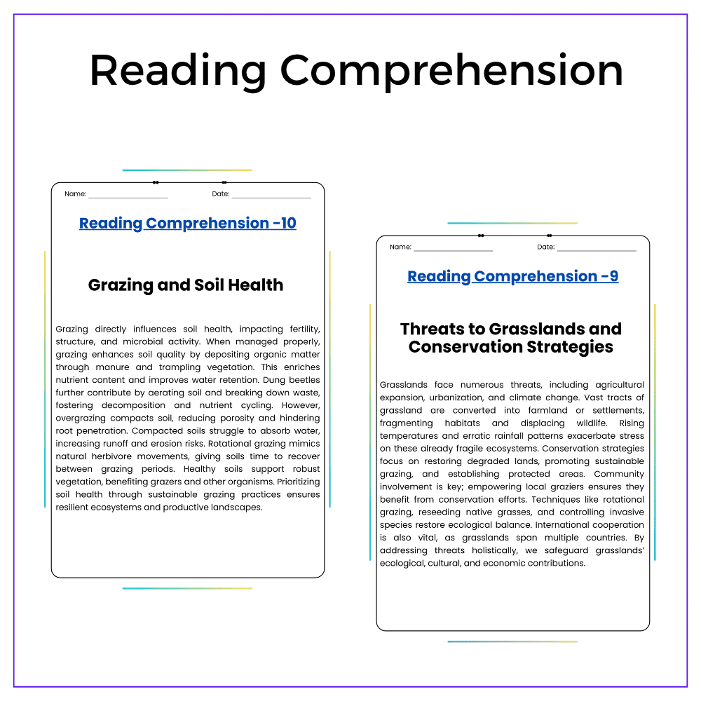• Comprehension passages – Introduction to grassland ecosystems and grazing pattern