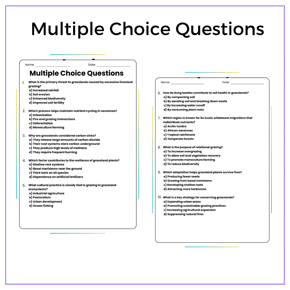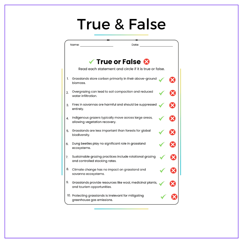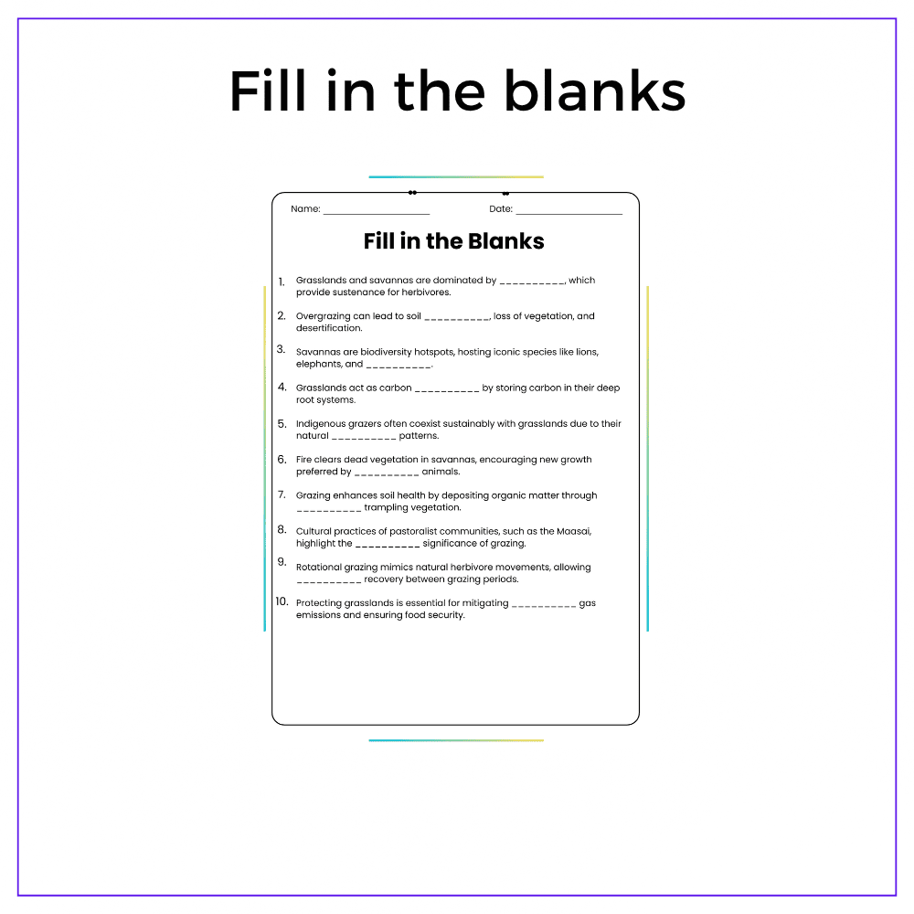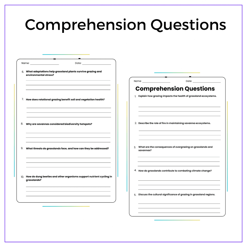 This worksheet helps your students understand the critical role of grasslands and savannas in supporting wildlife and agriculture with this interactive Grazing and the Importance of Grasslands and Savannas resource! Designed for grades 4–8, this resource explores how grazing animals shape ecosystems and why grasslands matter to both nature and humans.