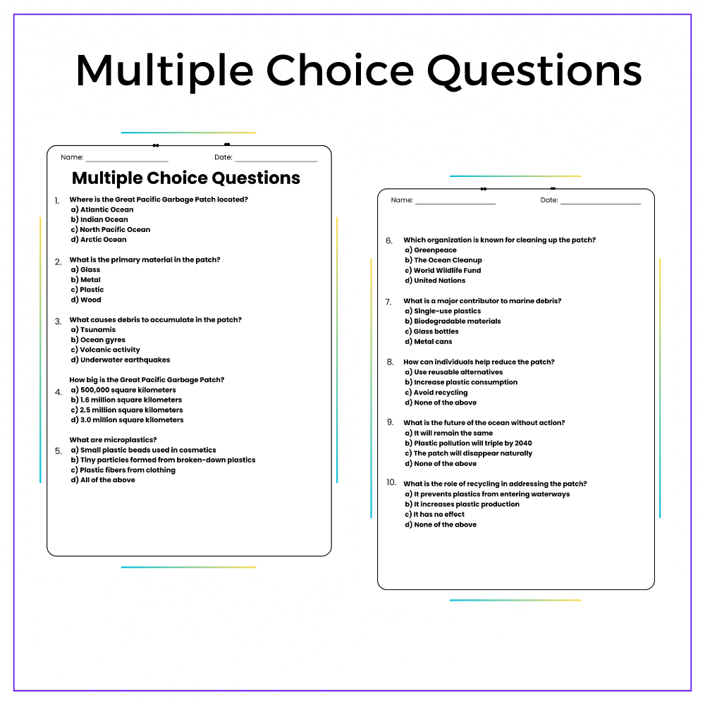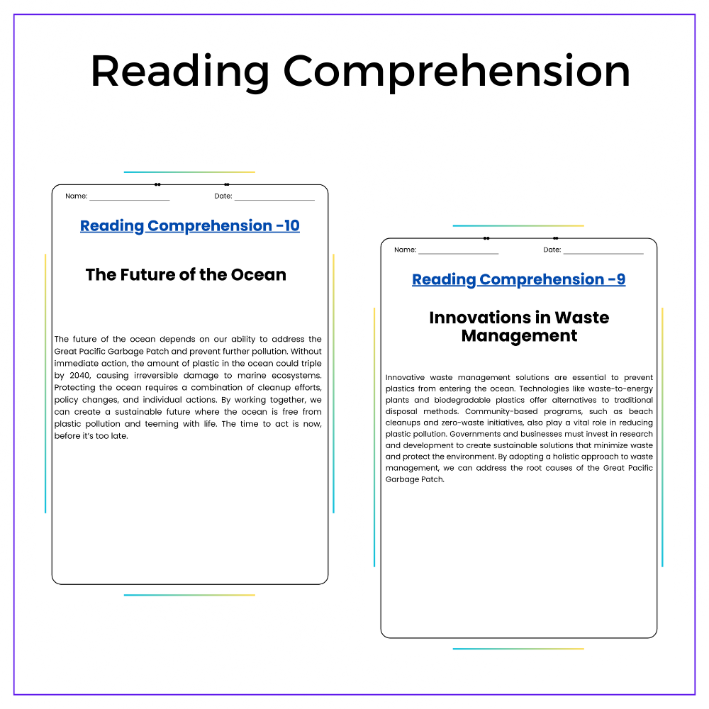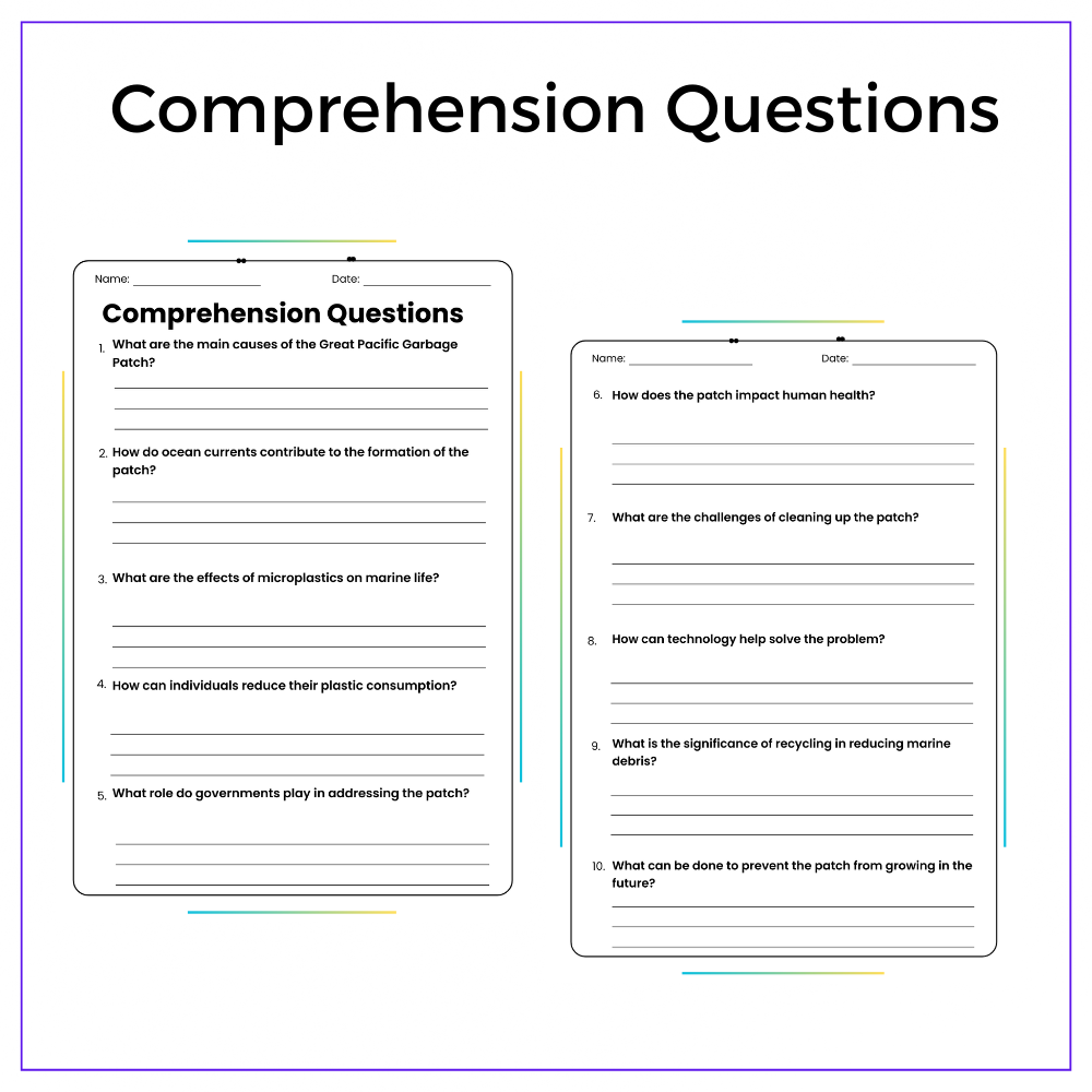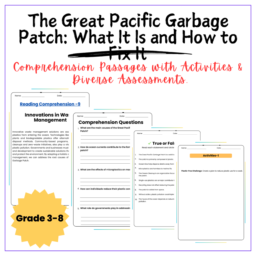 • Comprehension passages – Learn the causes and effects of the Garbage Patch