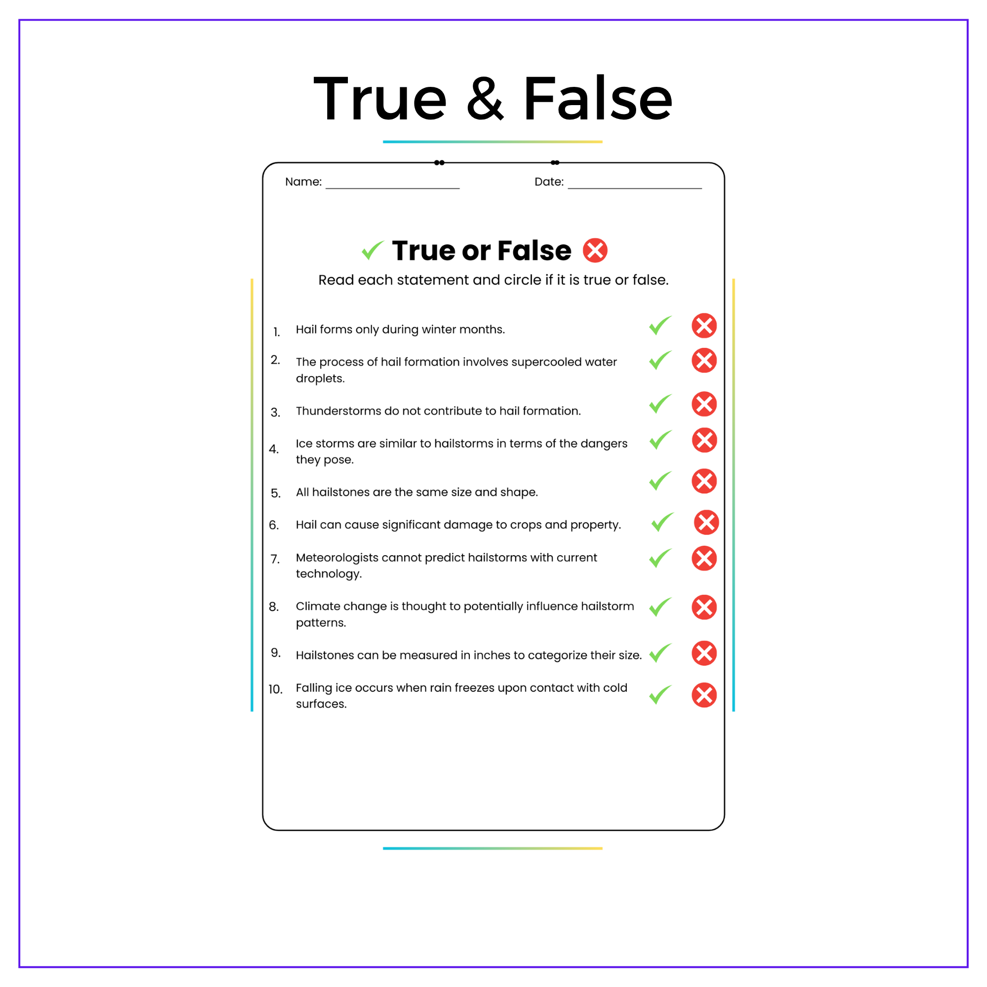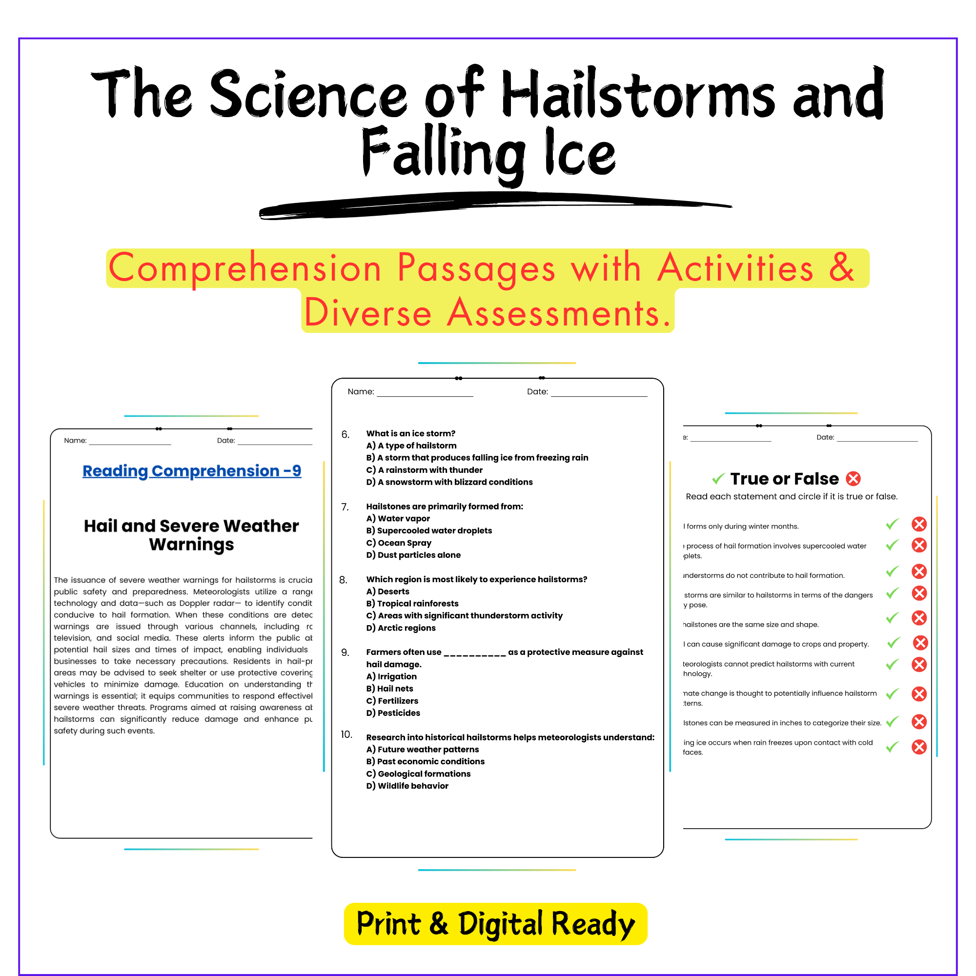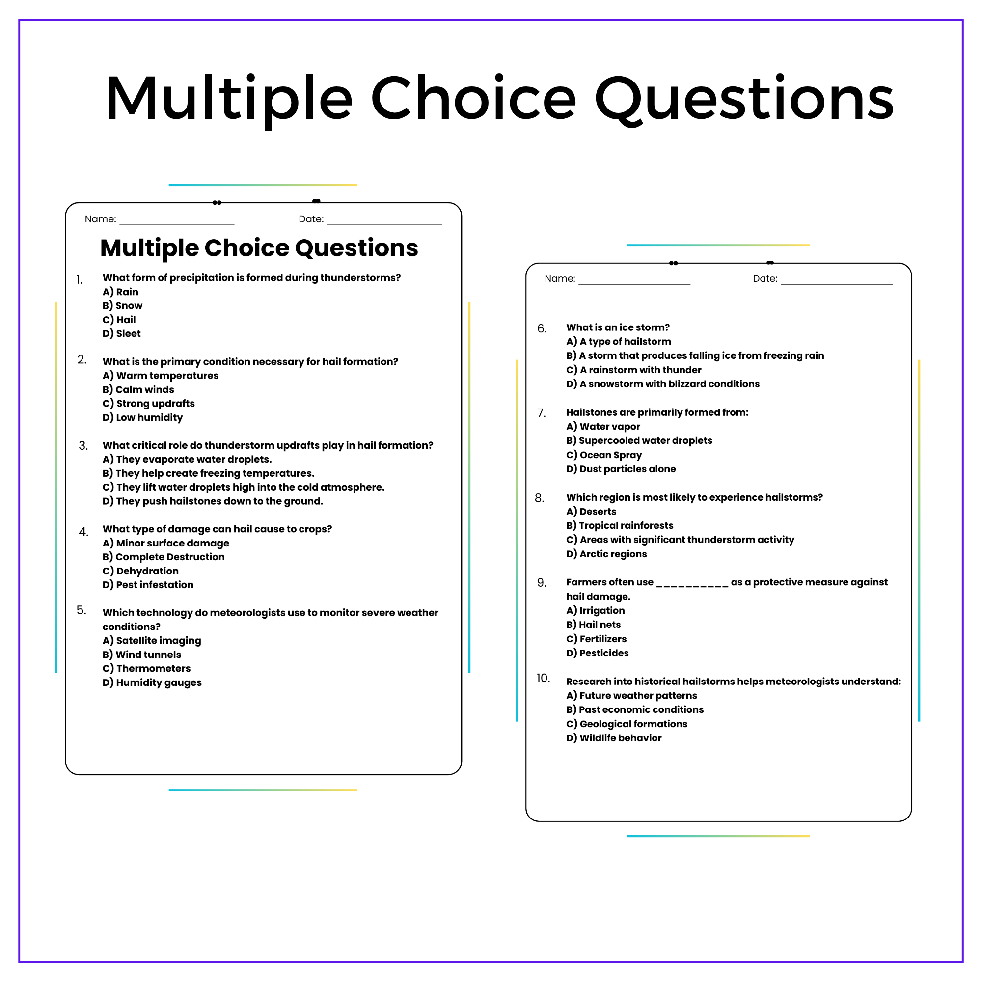 This worksheet helps students understand extreme weather with this interactive Science of Hailstorms and Falling Ice worksheet! Designed for grades 4–8, this resource explains how hail forms in thunderclouds, the dangers of falling ice, and the conditions that lead to these weather events.