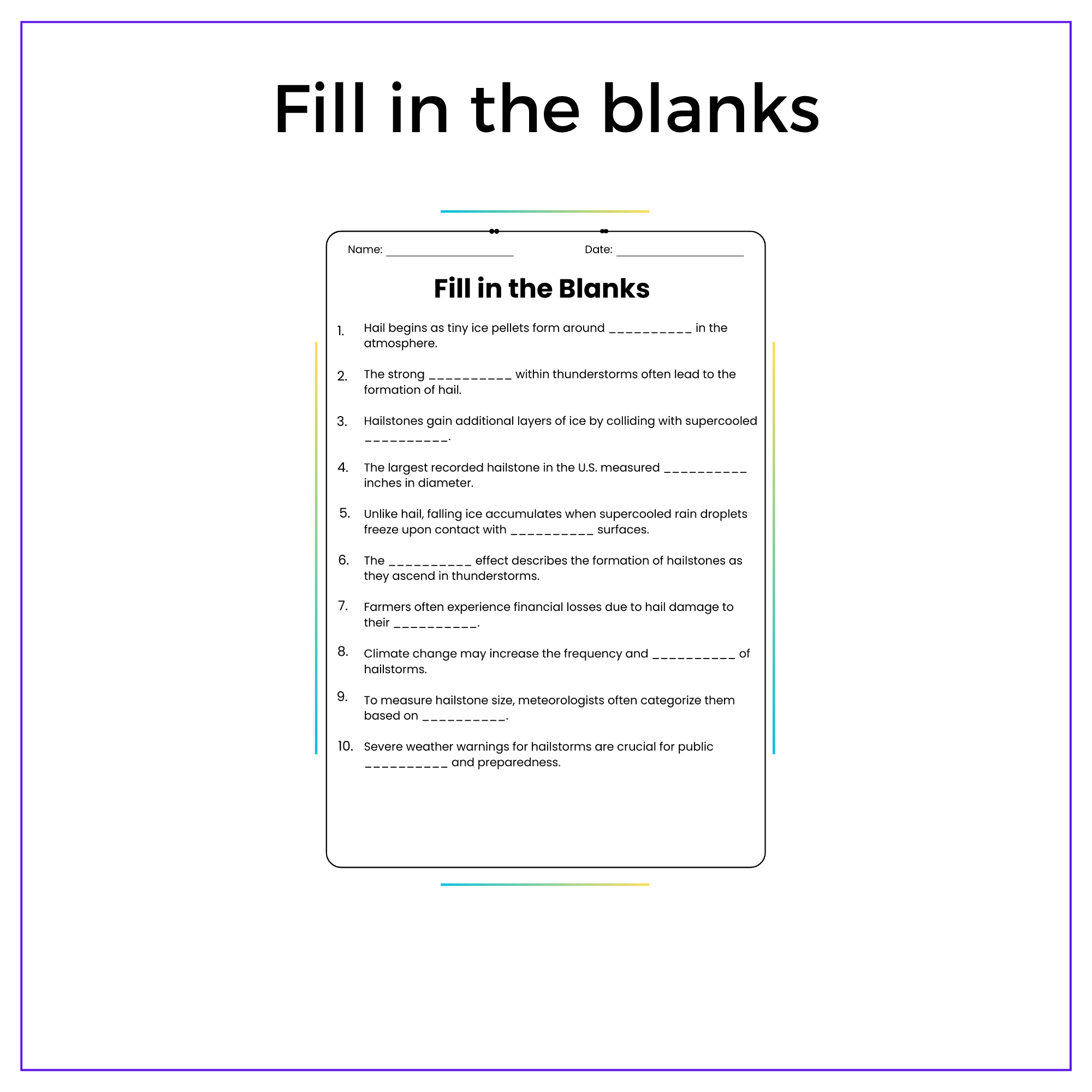 • Fill-in-the-blanks – Strengthen weather vocabulary and concepts