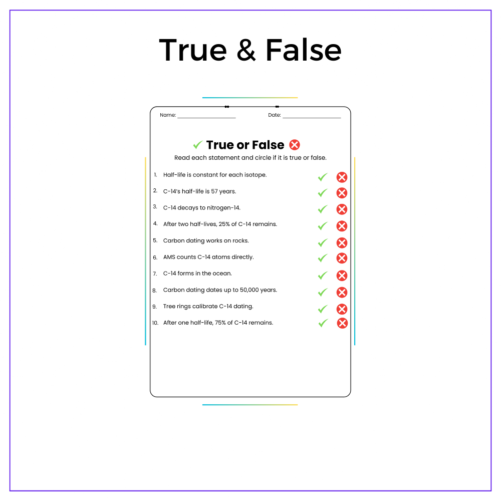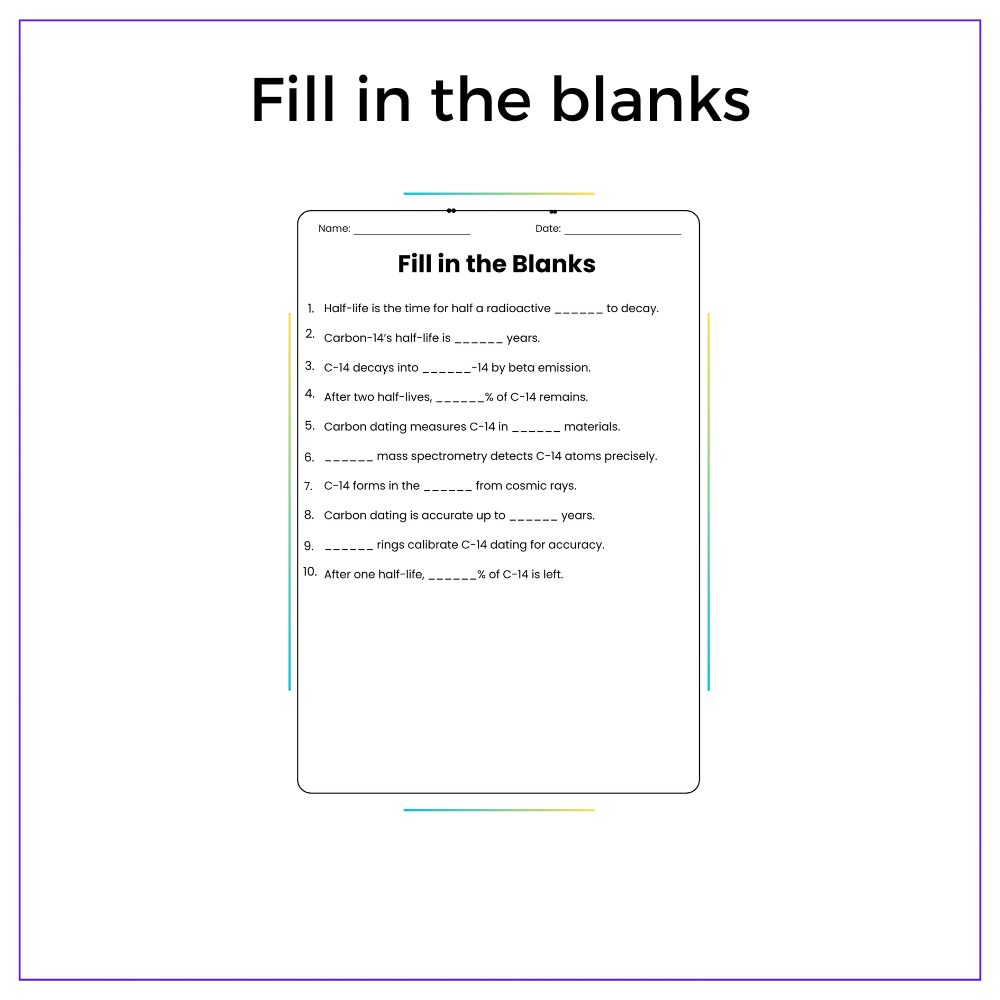 • Fill-in-the-blanks – Strengthen vocabulary like isotope, decay, and carbon-14