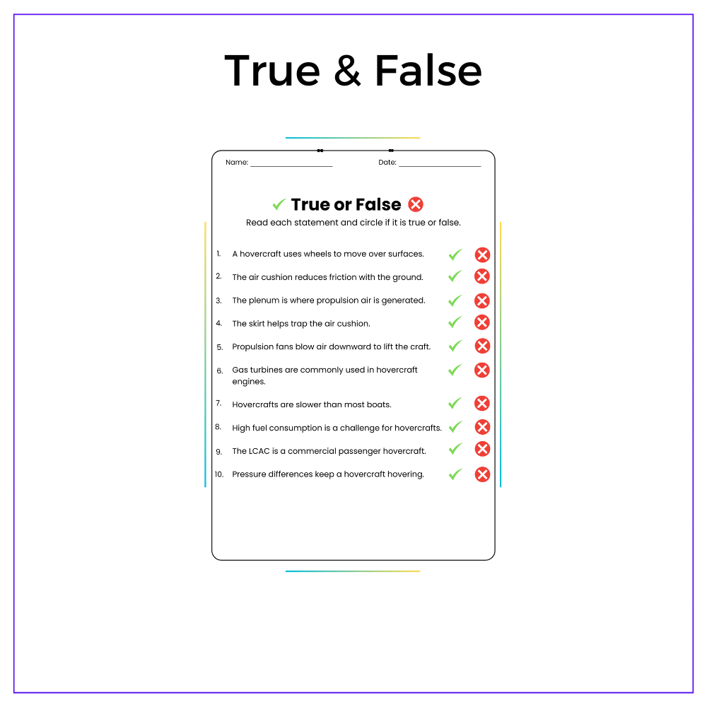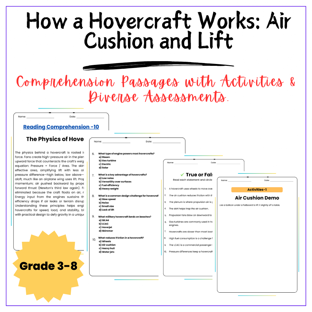 Take students on a smooth ride into physics with this exciting hovercraft worksheet! Learn how air cushions reduce friction and allow motion across land and water.