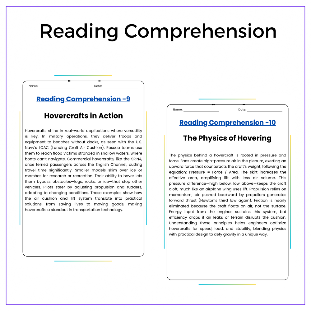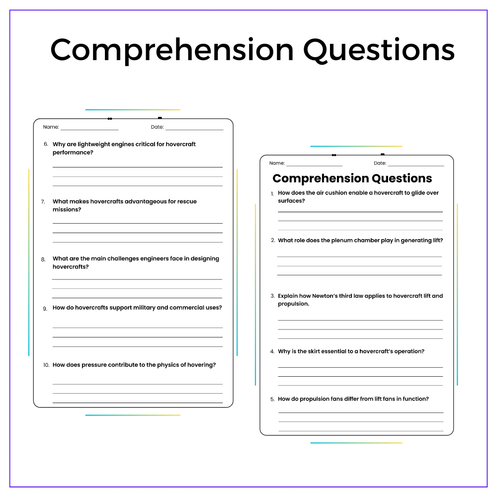 • Comprehension passages – Break down air pressure, lift, and propulsion