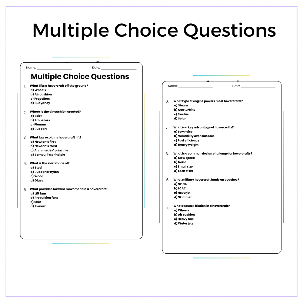 • Multiple-choice questions (MCQs) – Test hovercraft knowledge