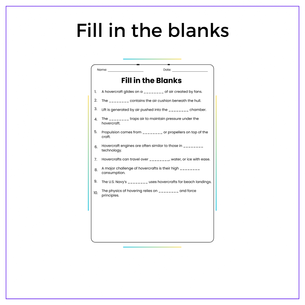 • Fill-in-the-blanks – Reinforce hovercraft terms