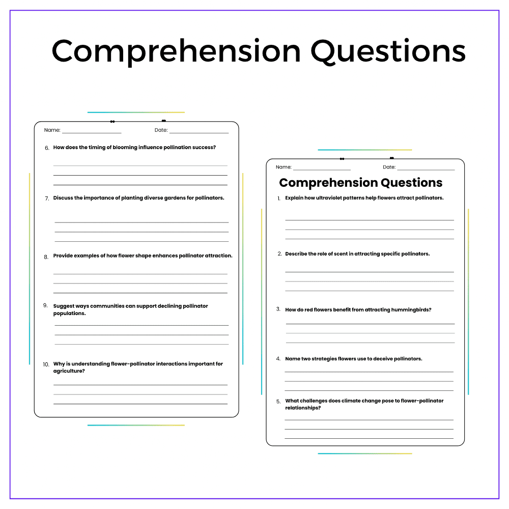 ✅ Comprehension questions – Encourage critical thinking about plant–pollinator interactions