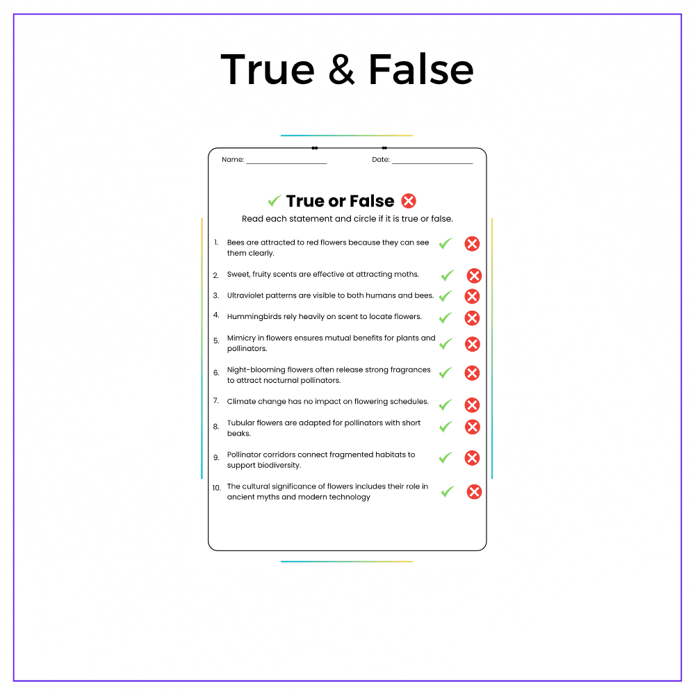 ✅ True & False exercises – Test students’ knowledge of how pollination works