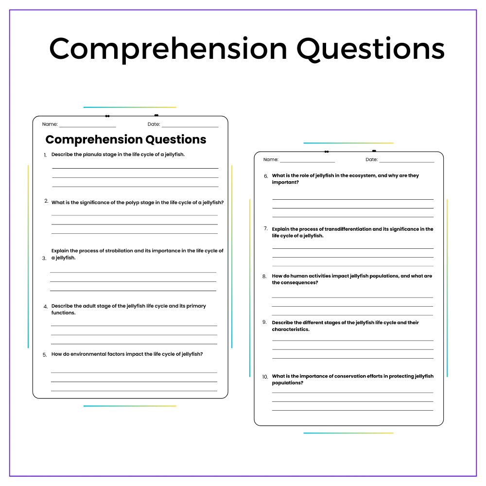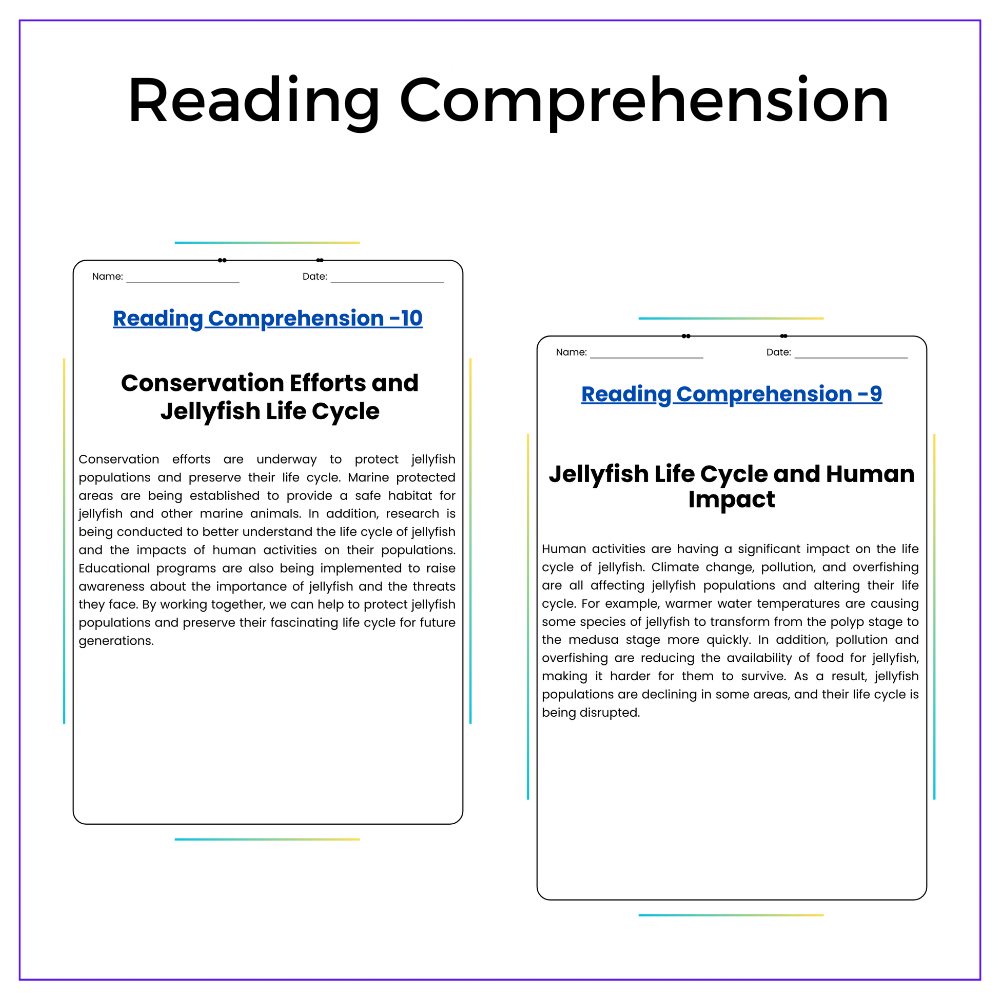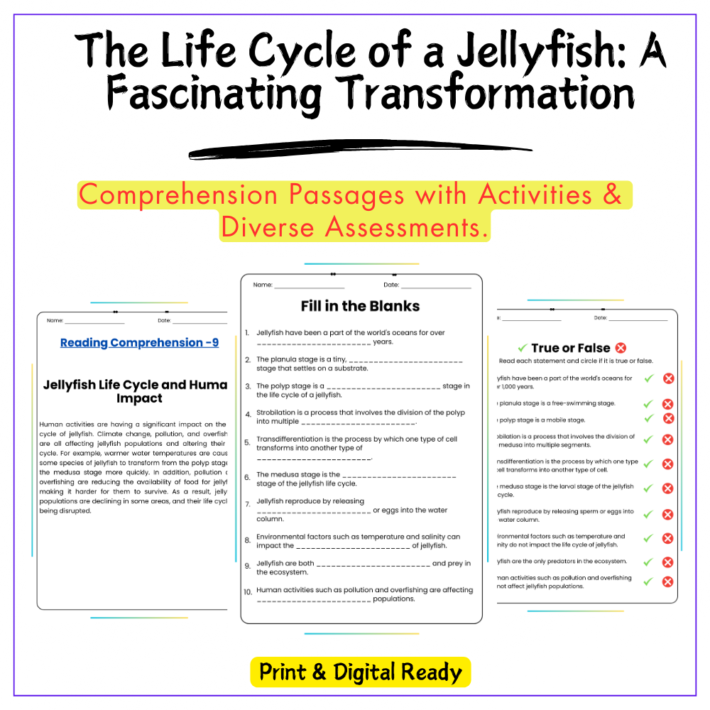 • Comprehension passages – Step-by-step explanation of jellyfish stages