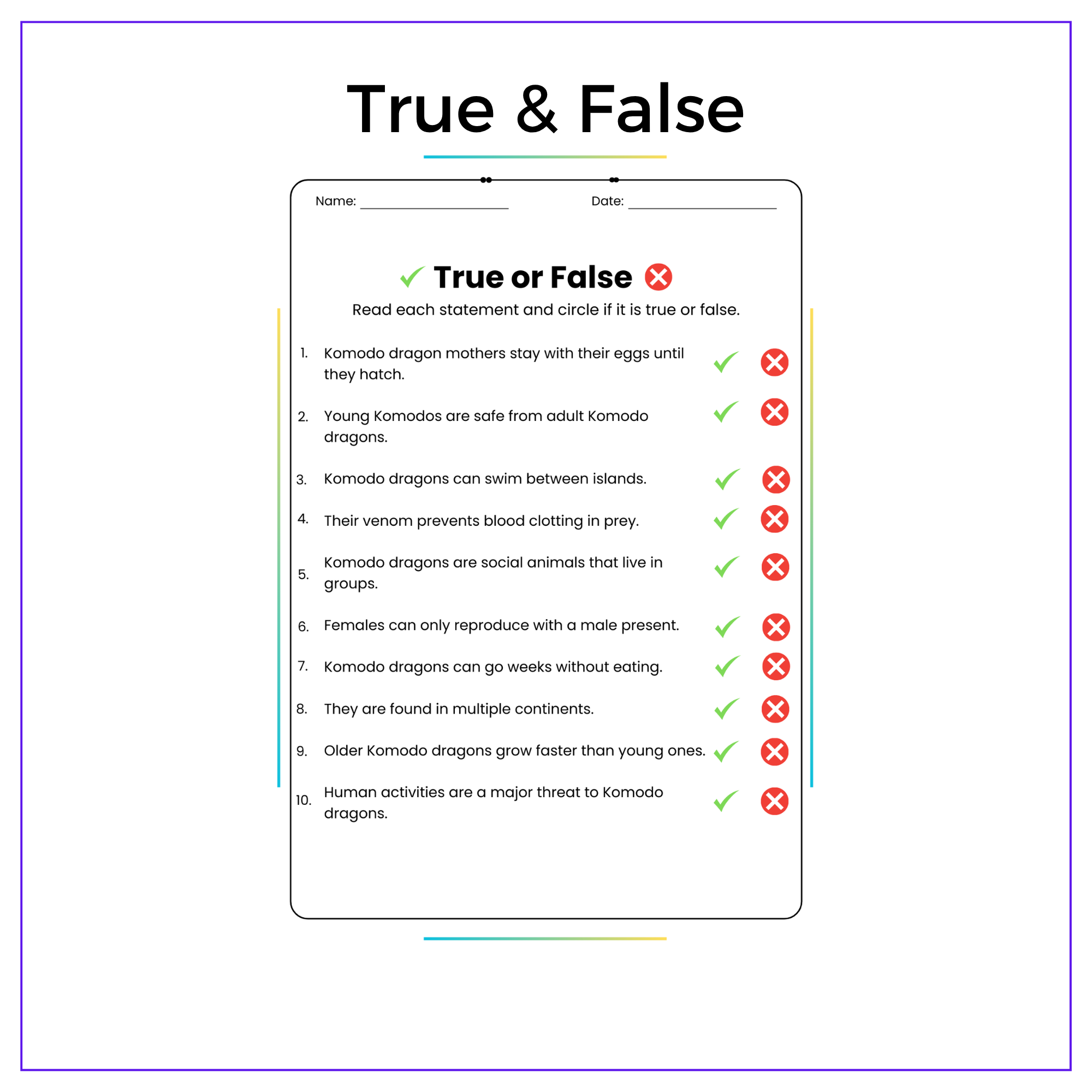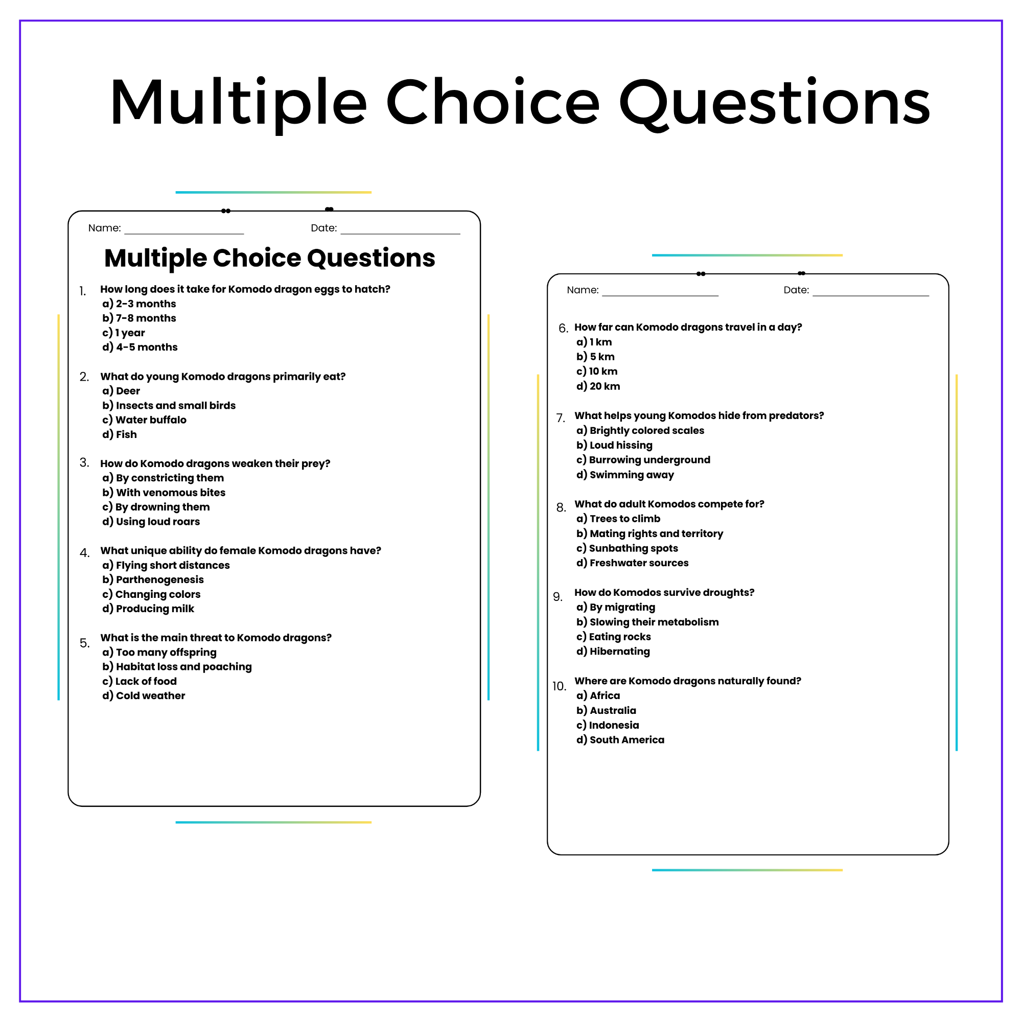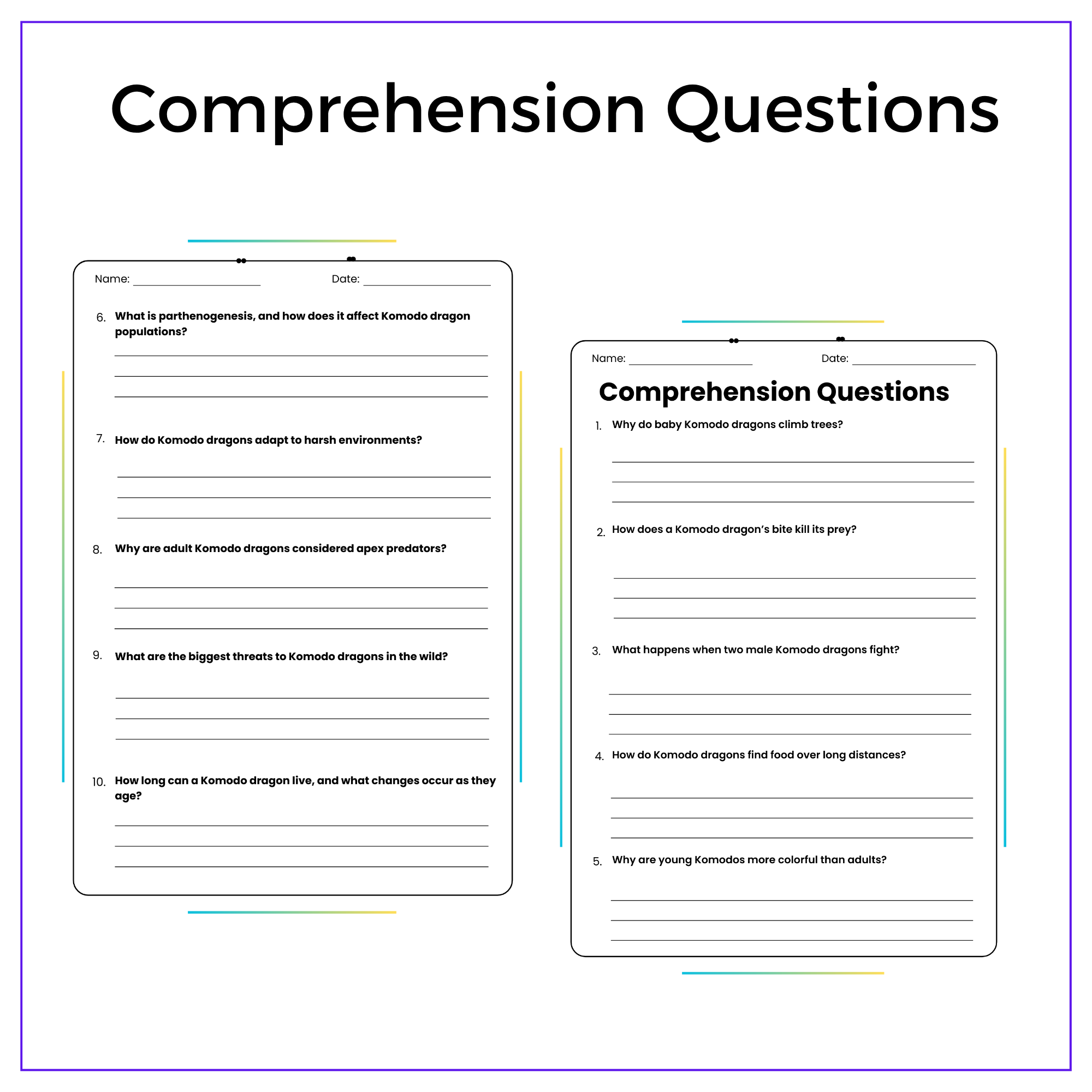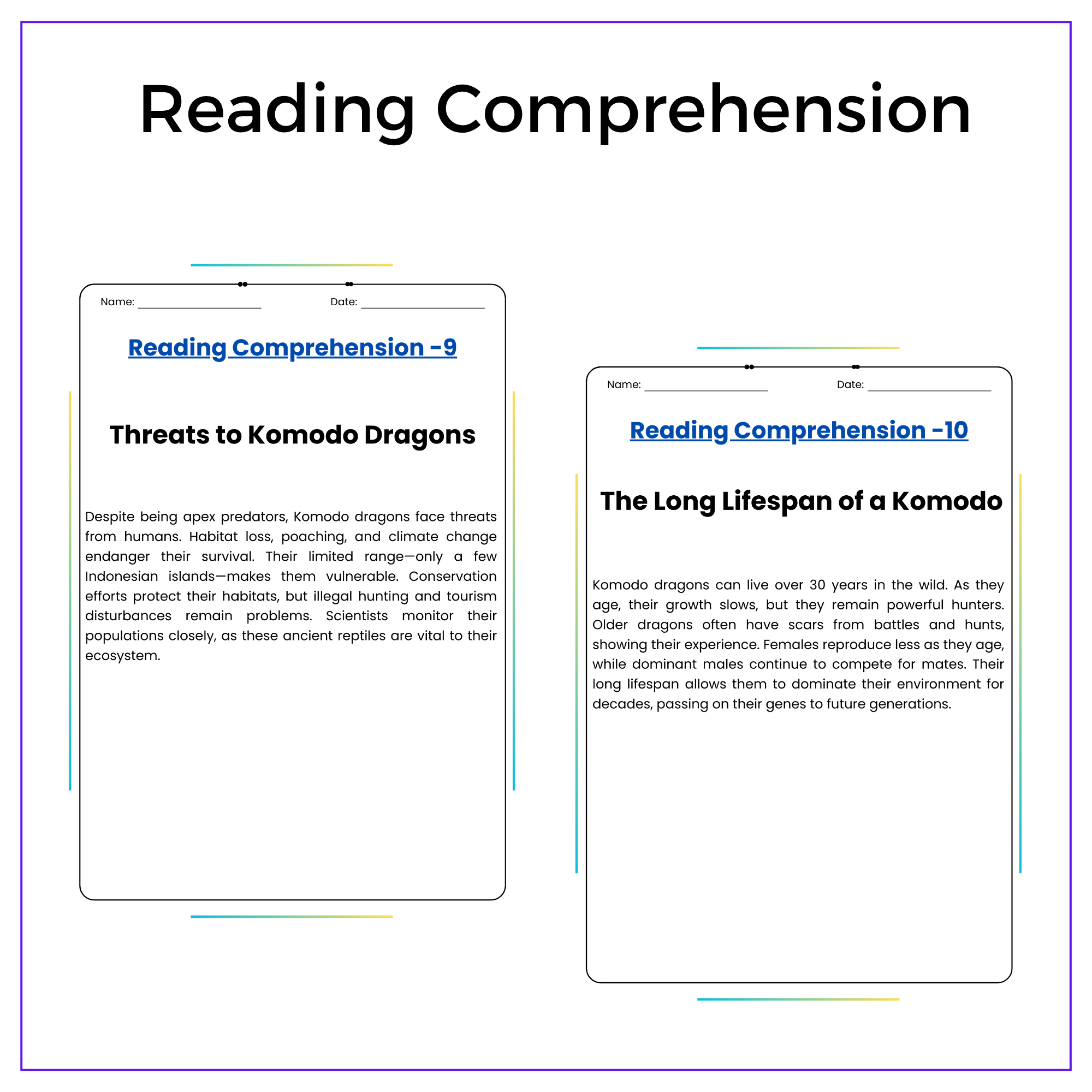 • Comprehension passages – Track each life stage of the Komodo dragon