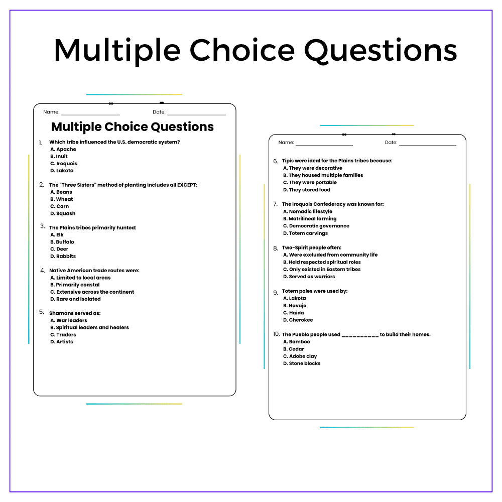 This versatile worksheet is perfect for individual assignments, group discussions, homeschooling, or extra practice, giving students a deeper appreciation of indigenous communities. It encourages historical empathy through engaging and respectful activities.