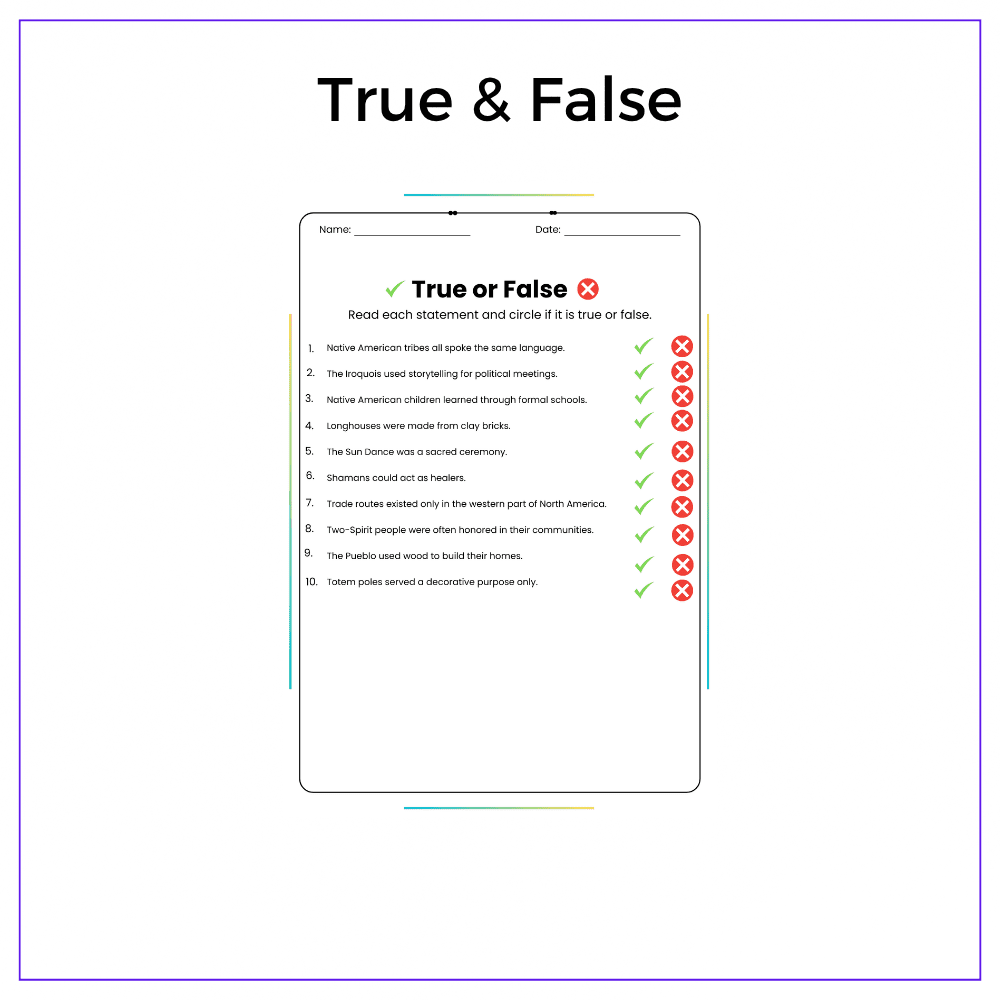 This worksheet helps your students explore rich histories with this interactive Native American Life Before Colonization worksheet! Designed for grades 4–8, this resource dives into the diverse cultures, traditions, and survival strategies of Native American tribes across North America.