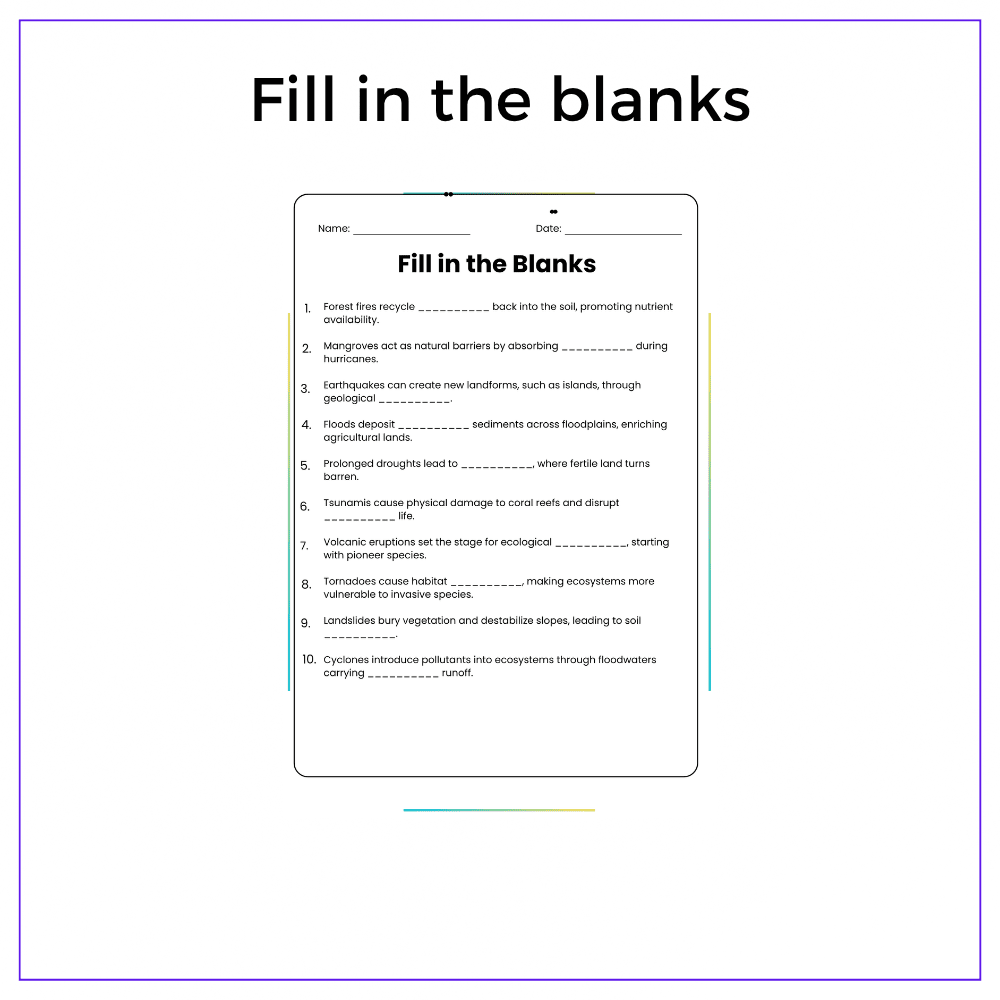 • Fill-in-the-blanks – Reinforce disaster-related vocabulary