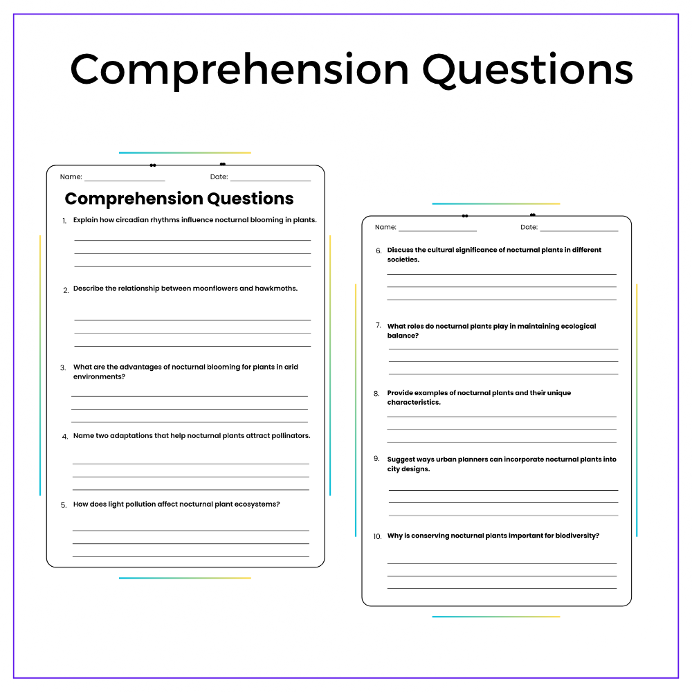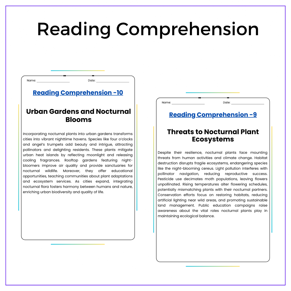• Comprehension passages – Detail the reasons and advantages of night blooming