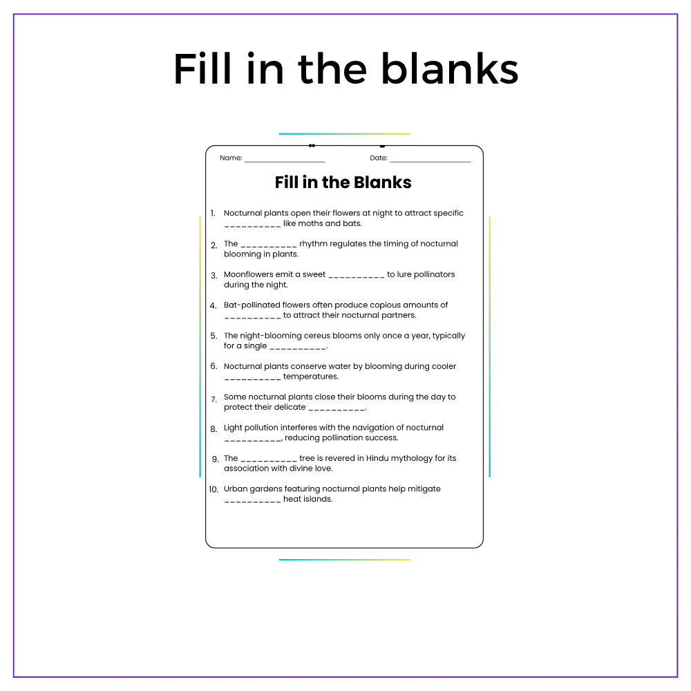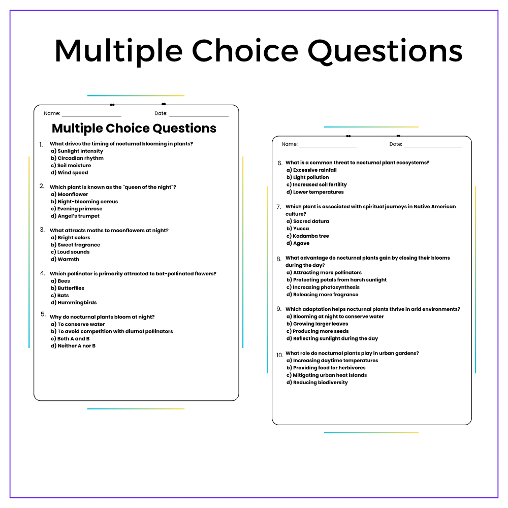 Discover why plants bloom at night with our worksheet for grades 4-8! Learn botany in this engaging lesson!
