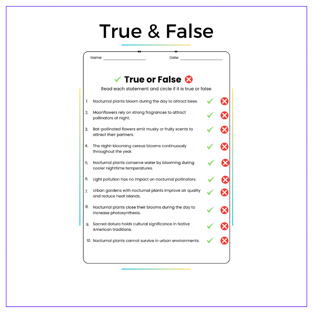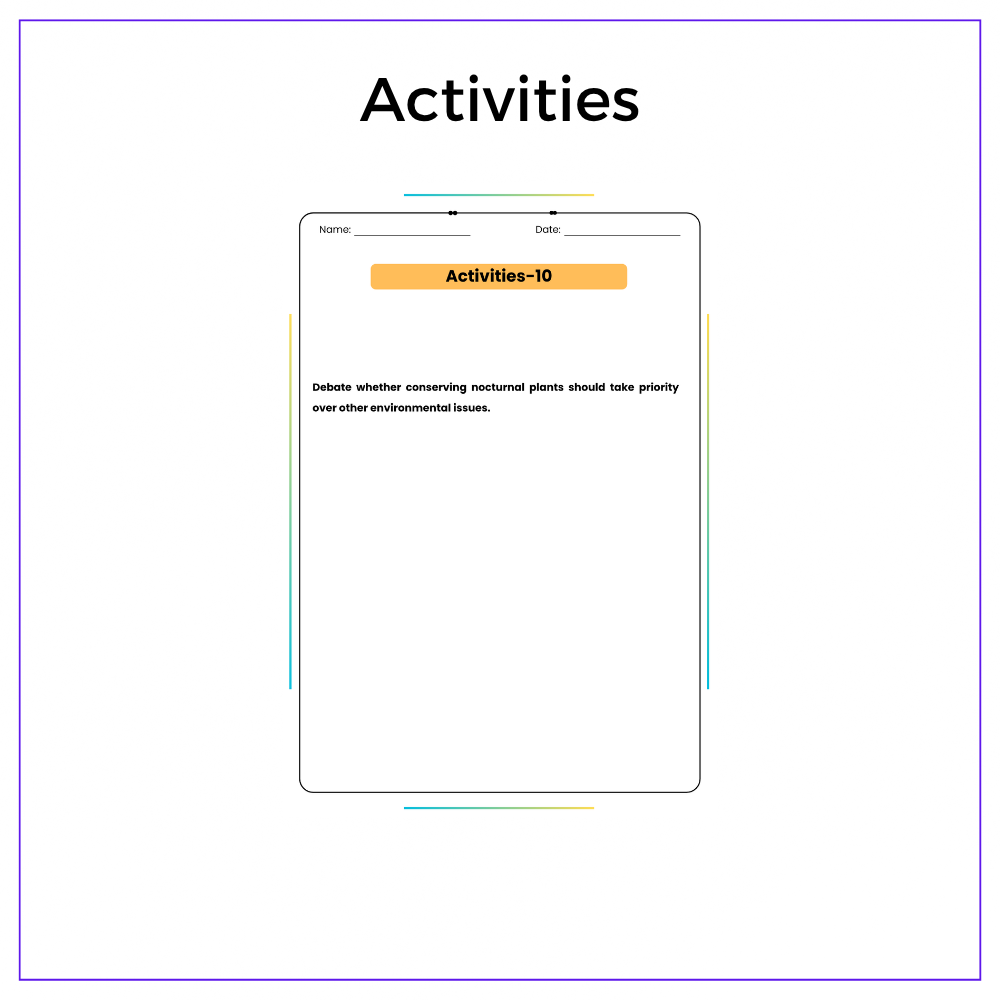 This worksheet helps your students understand how some plants bloom under moonlight with this interactive Nocturnal Plant Behavior worksheet! Designed for grades 4-8, this resource highlights fascinating examples like the moonflower and night-blooming jasmine, making the topic fun and accessible with hands-on activities.