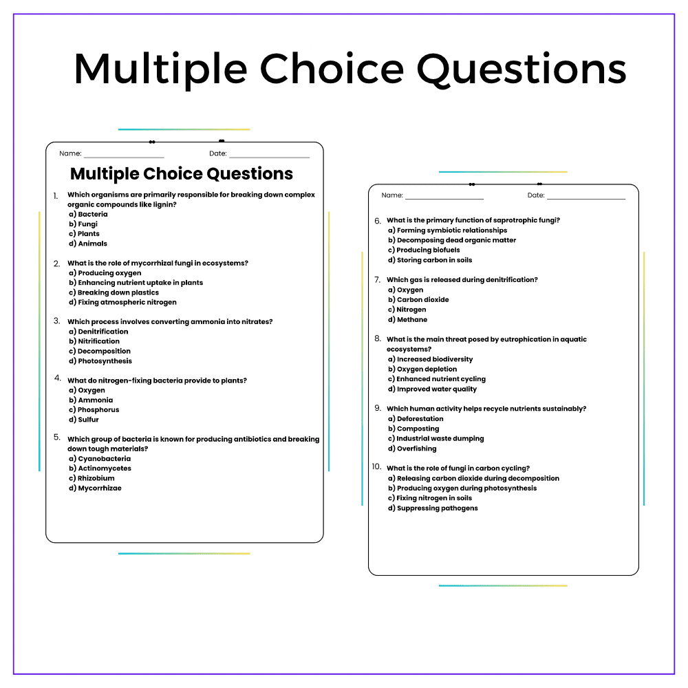 • Comprehension passages – Clear explanations of nutrient recycling by fungi and bacteria