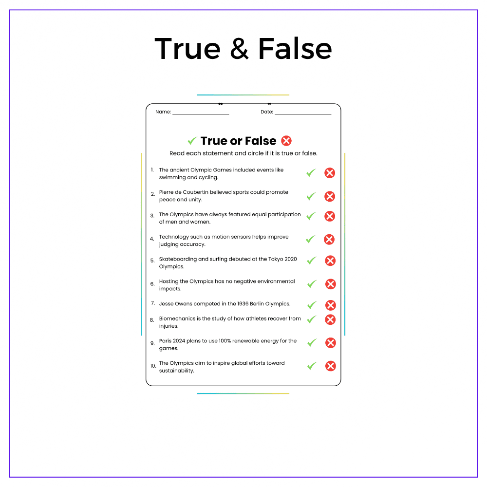 • True & False exercises – Clarify common Olympic misunderstandings