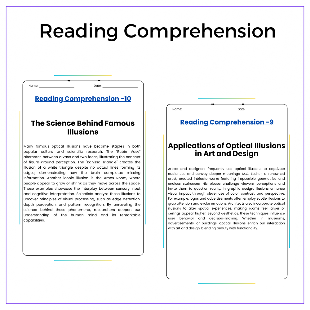 Ideal for individual projects, group work, or visual perception units, this worksheet includes reading passages, vocabulary practice, MCQs, true/false checks, and critical-thinking tasks. Fun class activities challenge students to create and decode illusions themselves.