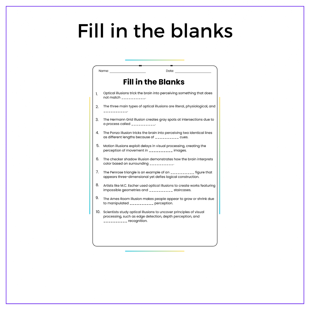 Give your students a mind-bending learning experience—add this optical illusion worksheet to your toolkit today!