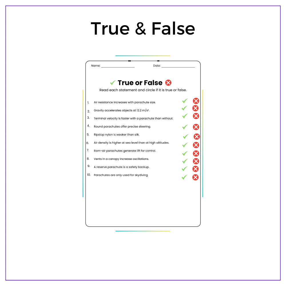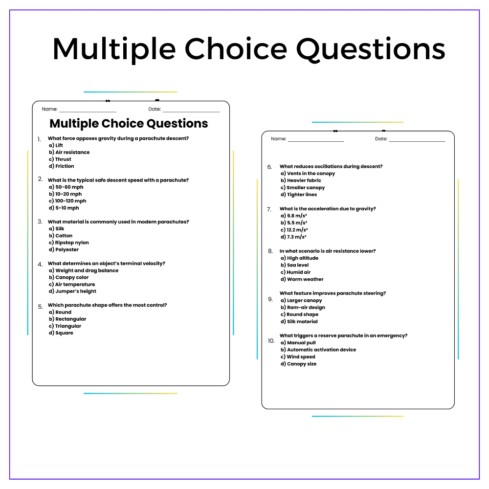 Let your students soar into the world of physics with this exciting worksheet on parachutes and air resistance! Designed for grades 4–8, this resource explores how gravity and air resistance interact to slow falling objects, using parachutes as the perfect real-world example.