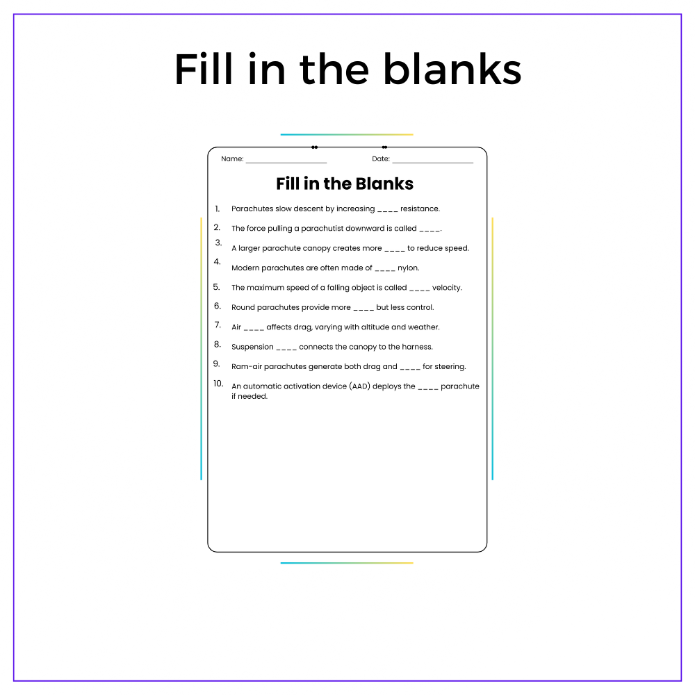 • Fill-in-the-blanks – Reinforce terms like “drag,” “gravity,” and “terminal velocity”