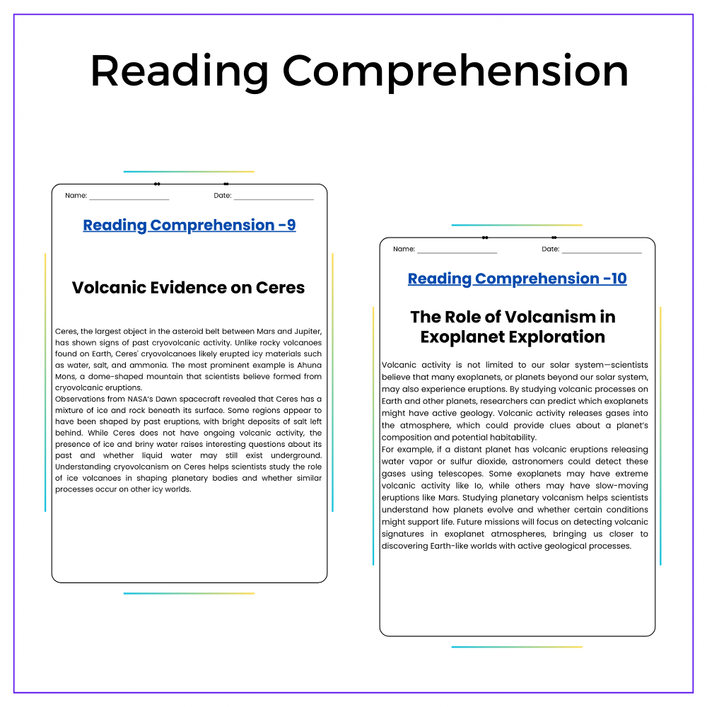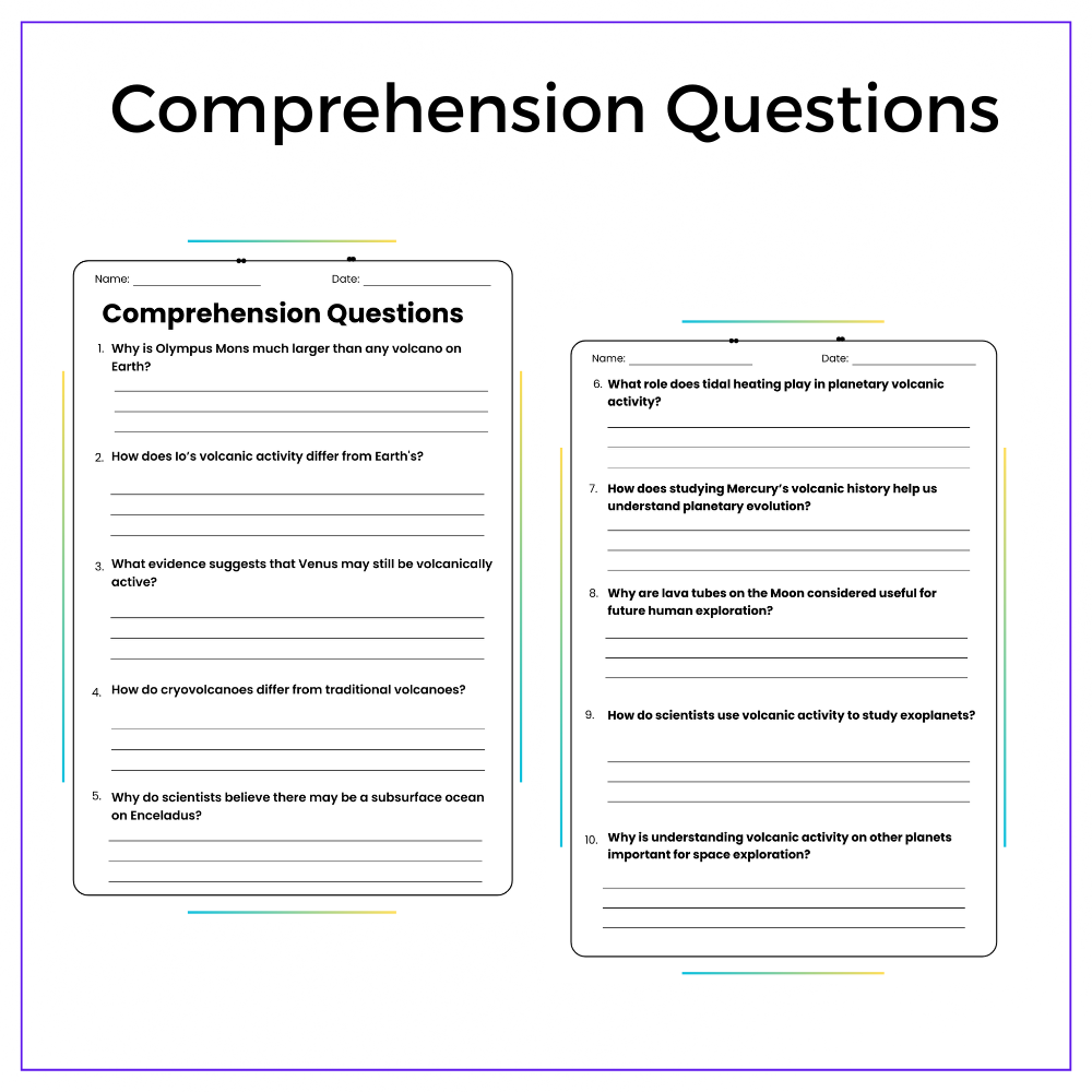 • Comprehension passages – Explore volcanic activity on Mars, Io, and more