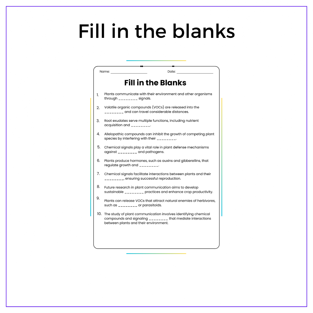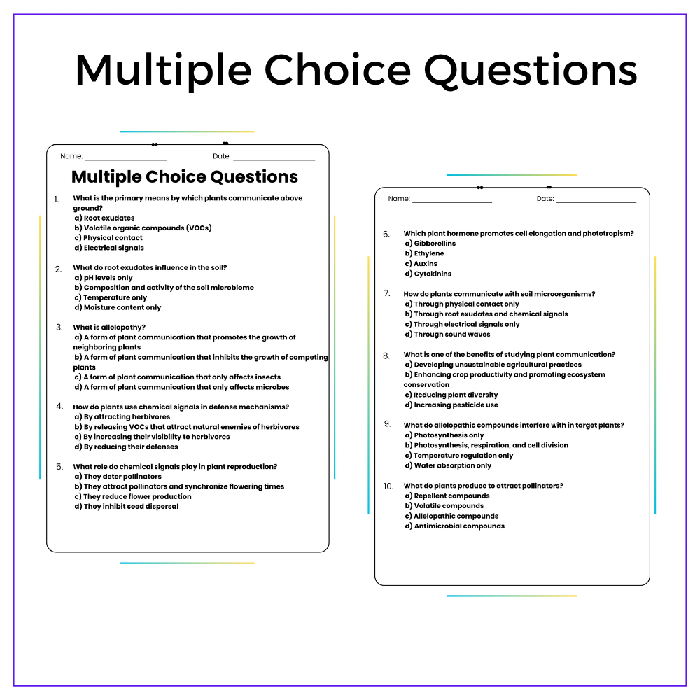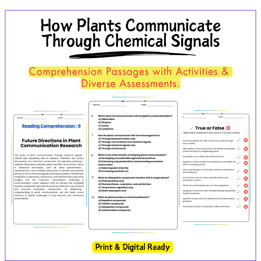 This worksheet helps your students discover plant behavior with this interactive How Plants Communicate Through Chemical Signals worksheet! Designed for grades 4–8, this resource explains how plants send chemical messages to respond to threats, attract pollinators, and interact with their environment.