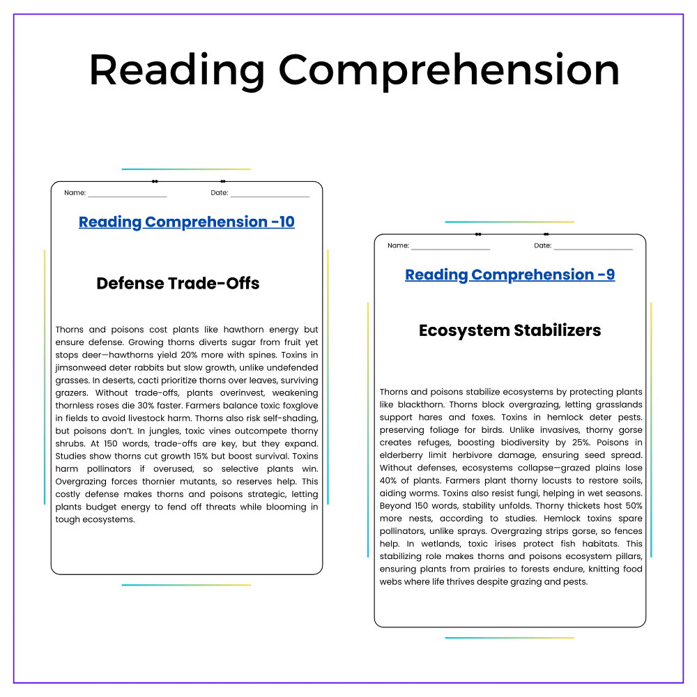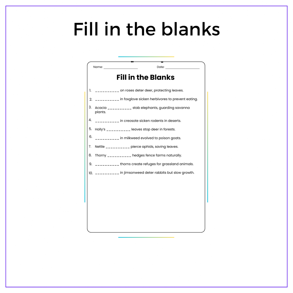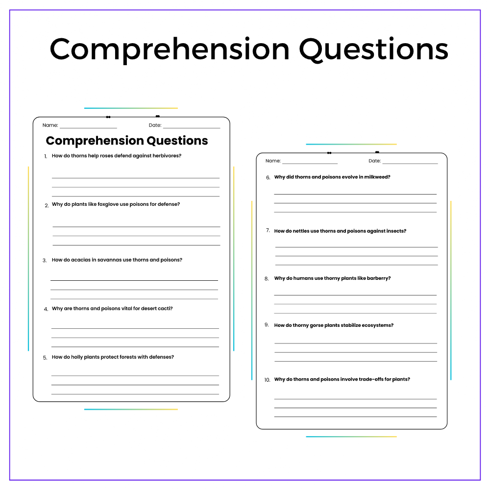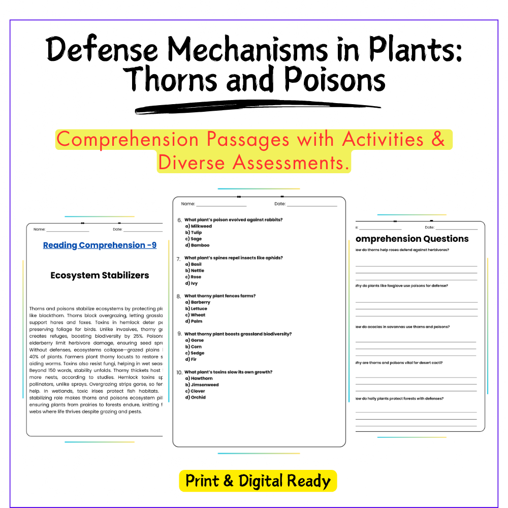 - Comprehension passages – Describe how plants use thorns and poisons for survival