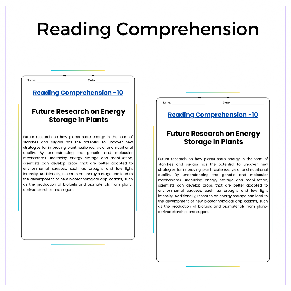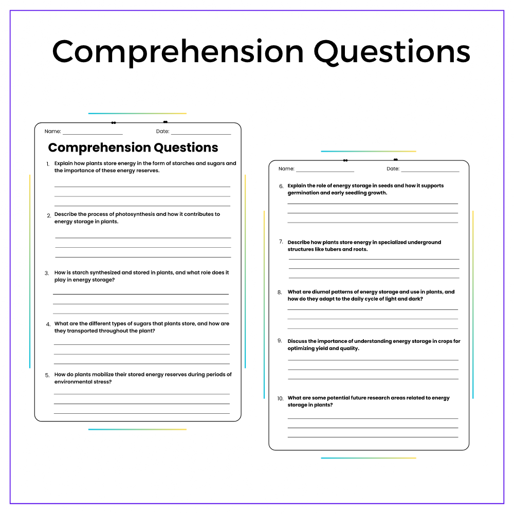 • Comprehension passages – Explore glucose, starch, and plant energy storage