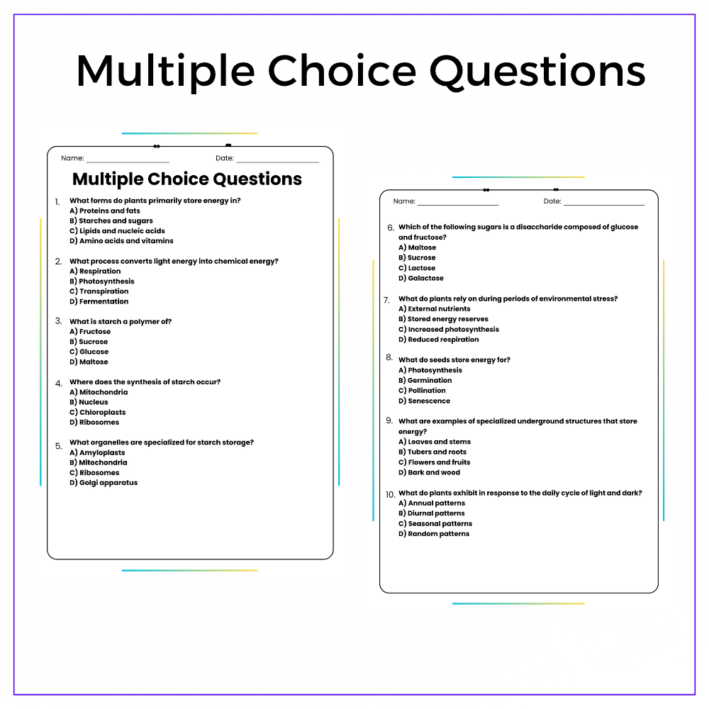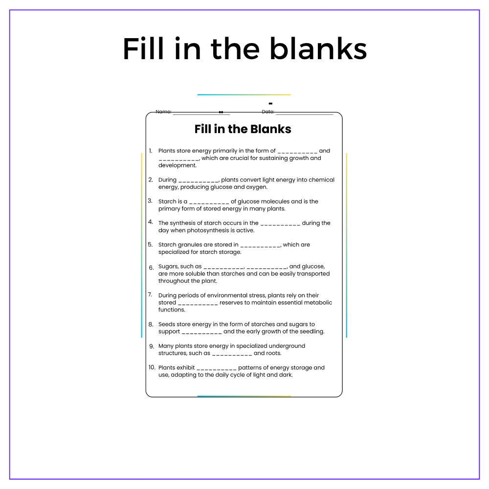 Discover how plants store energy with our worksheet for grades 4-8! Learn biology in this engaging lesson!
