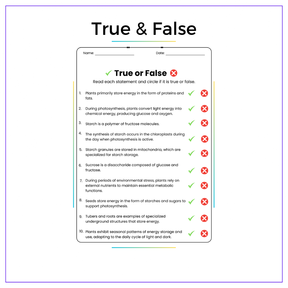 This worksheet helps your students understand how plants store energy with this interactive Plant Energy Storage Through Starches and Sugars worksheet! Designed for grades 4–8, this resource explains how plants turn glucose into starch and store it for future use.