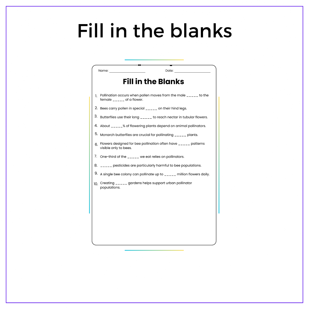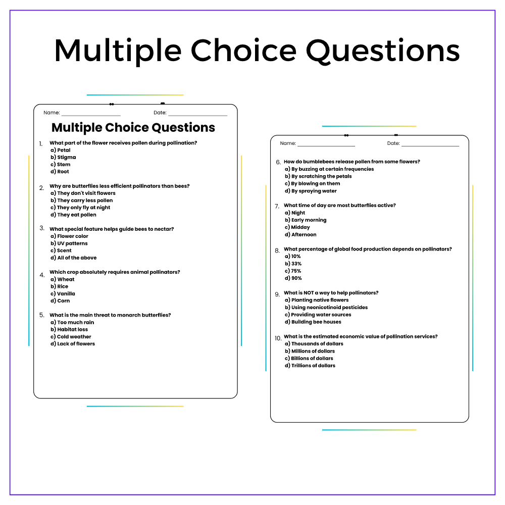 This worksheet helps your students unlock the important role of pollinators with this interactive Pollination worksheet! Designed for grades 4–8, this resource dives into how bees, butterflies, and other insects help flowers reproduce, making complex biological processes easy to understand through fun activities.