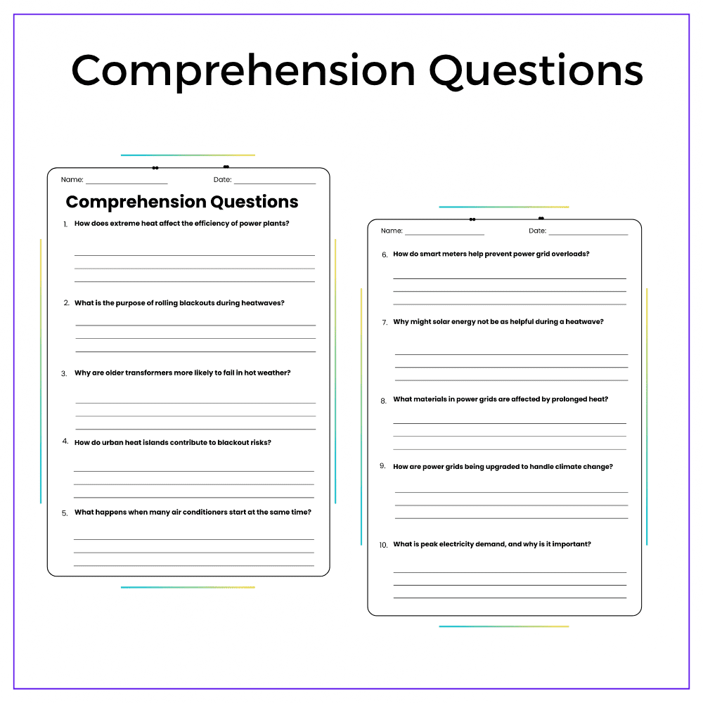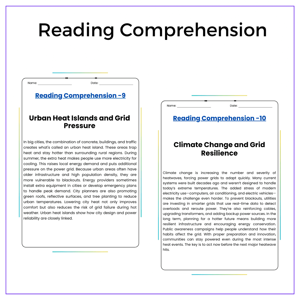 ✅ Comprehension passages – Explain how power grids work, why heat increases demand, and how blackouts happen