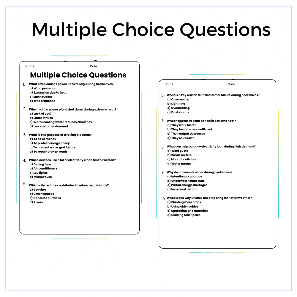Help your students uncover the connection between extreme heat, energy use, and power supply with this interactive Science of Power Grids worksheet! Designed for grades 4–8, this resource explains how high temperatures strain electricity systems, why blackouts occur, and how communities can adapt to energy challenges in hot weather.