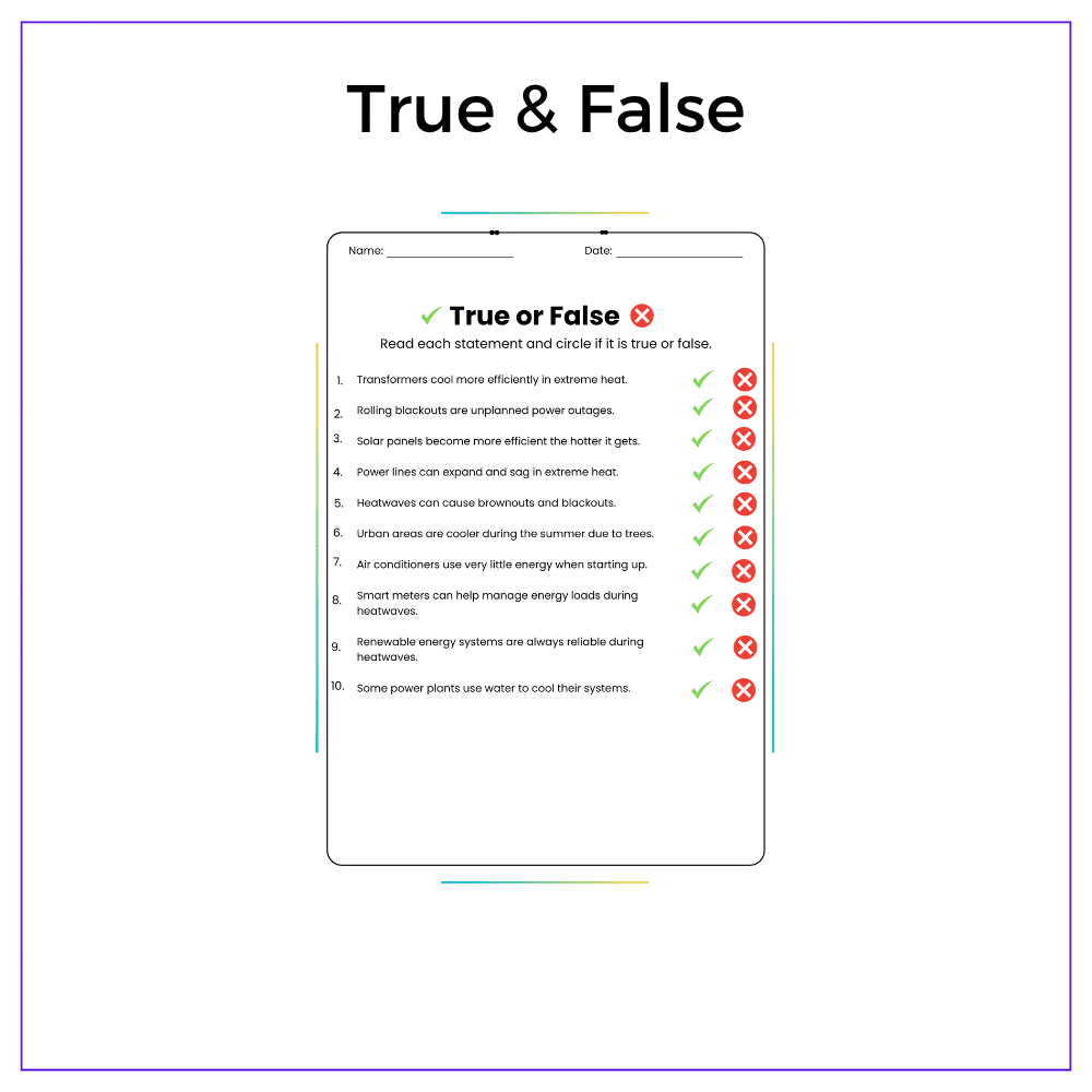 ✅ True & False exercises – Test students’ knowledge of power grids and heat effects