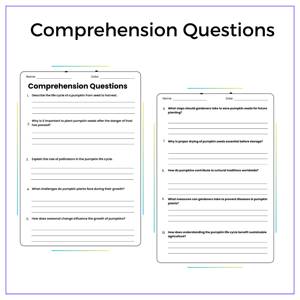 • Comprehension passages – Follow the pumpkin’s seasonal life cycle